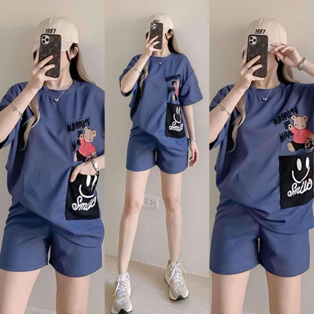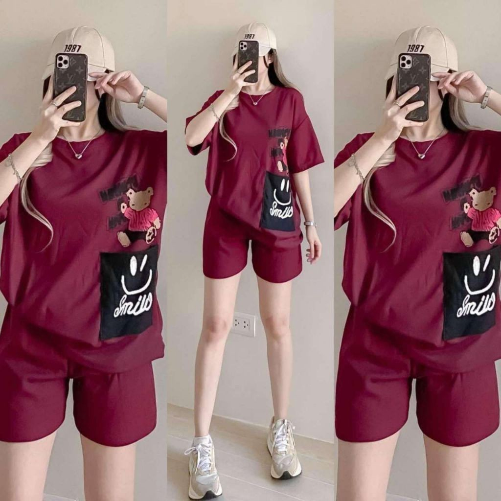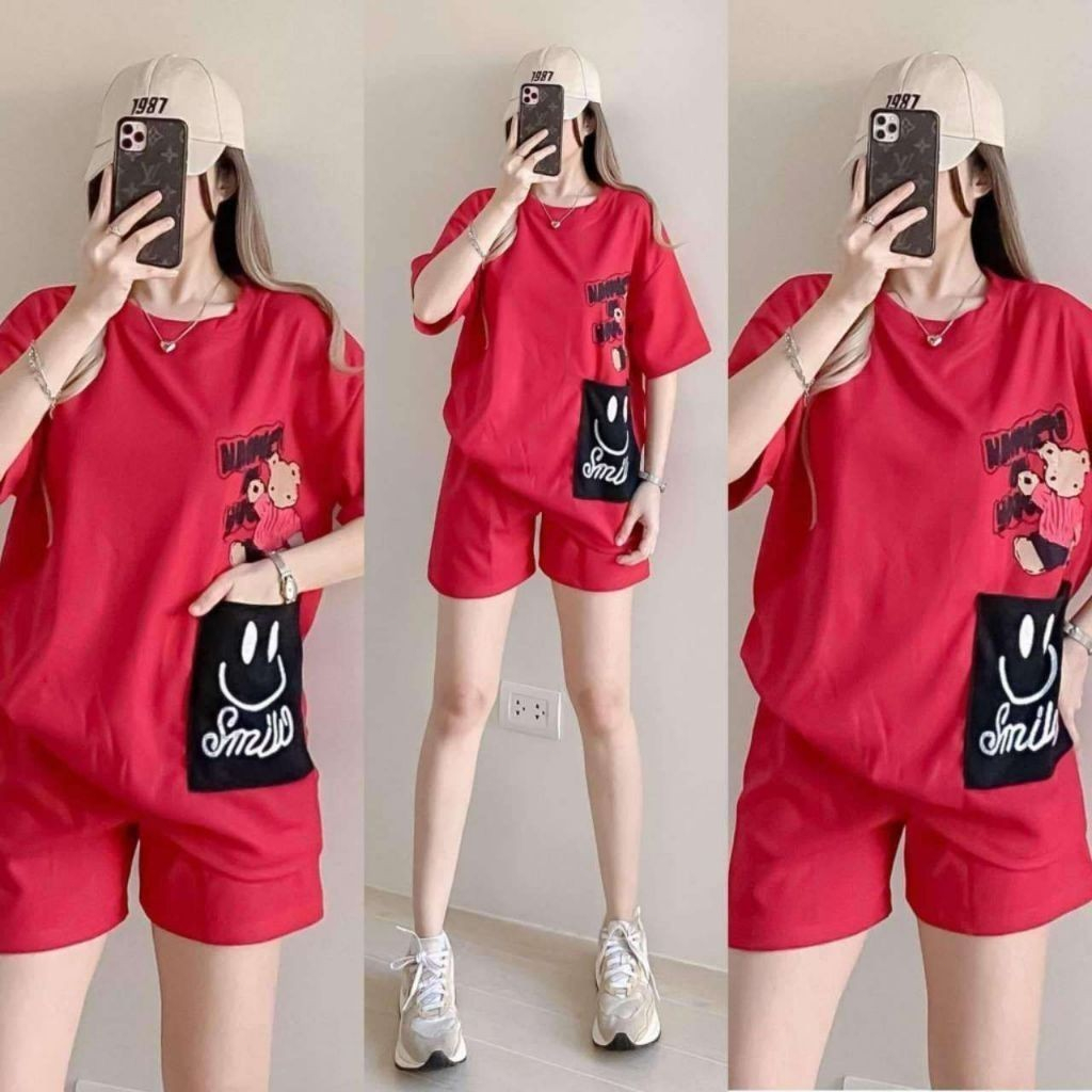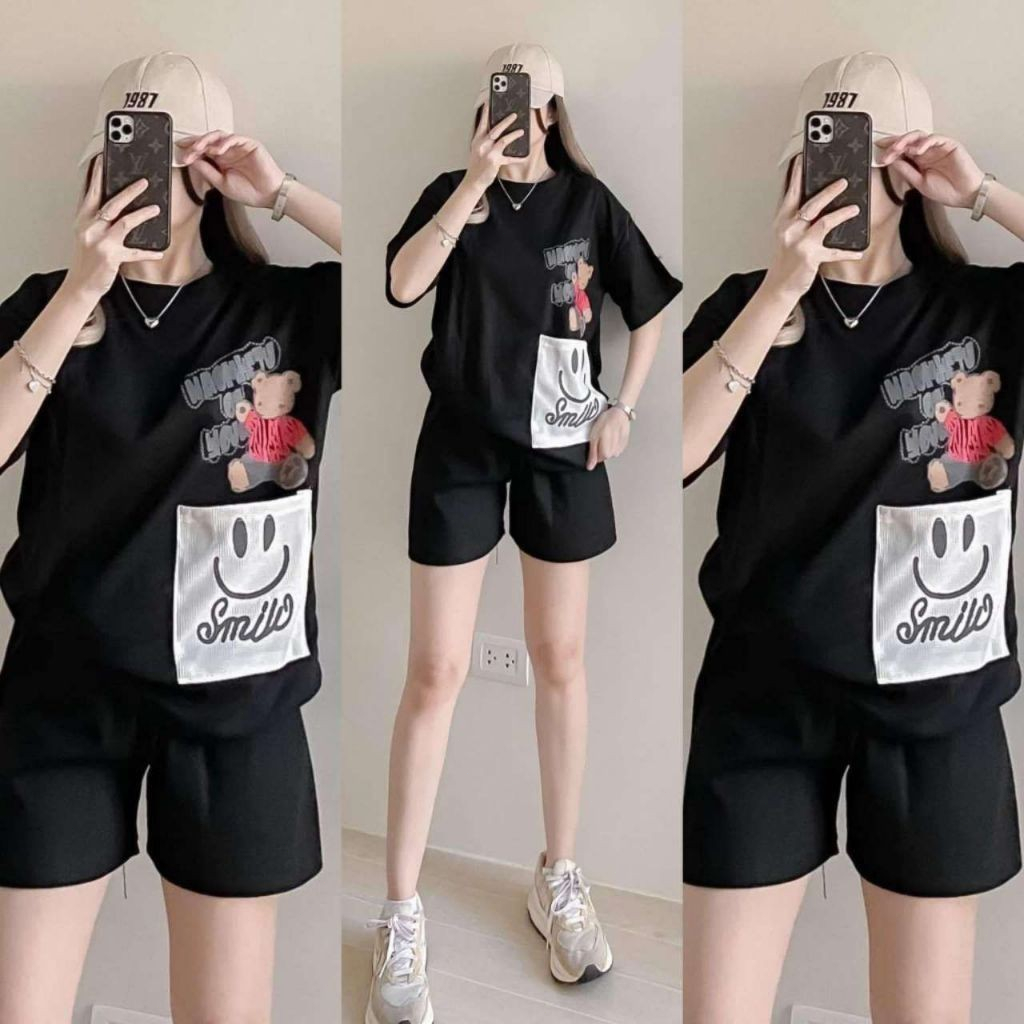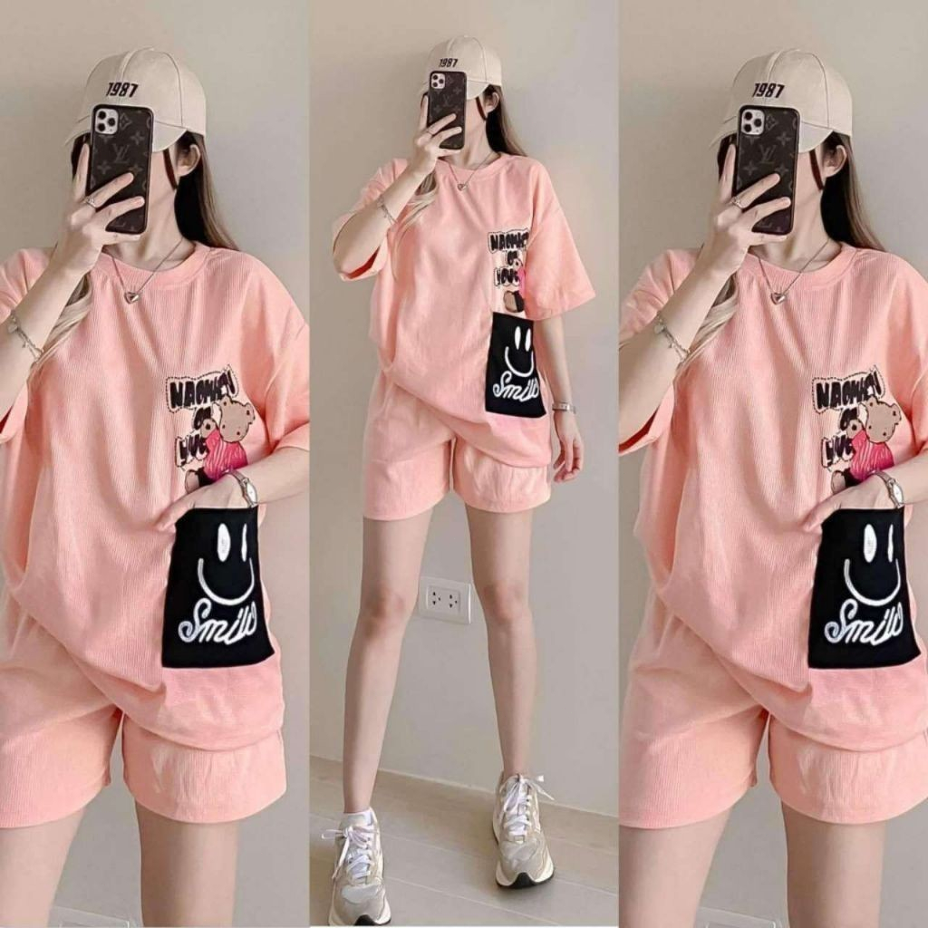T-Shirt at Shorts Set para sa Babae – Trendy Letter Print Lounge Wear Oversized style / Loose fit