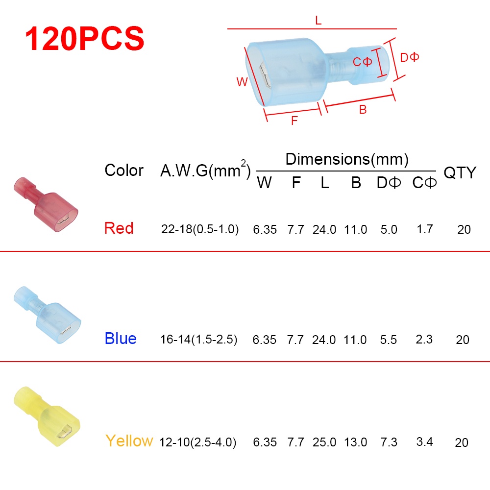 T-Tap Wire Connectors Electrical Wire Terminals Insulated Self-Stripping Quick Splice 120pcs