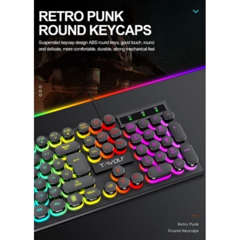 T-WOLF TF270 Retro punk game keyboard