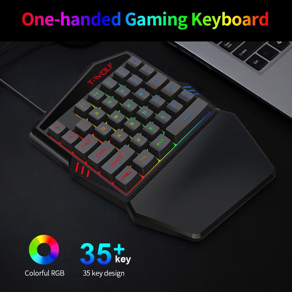 T-WOLF TF900 Wired One-handed Gaming Keyboard 35 Key Colorful RGB Keyboard for Android/Windows/IOS