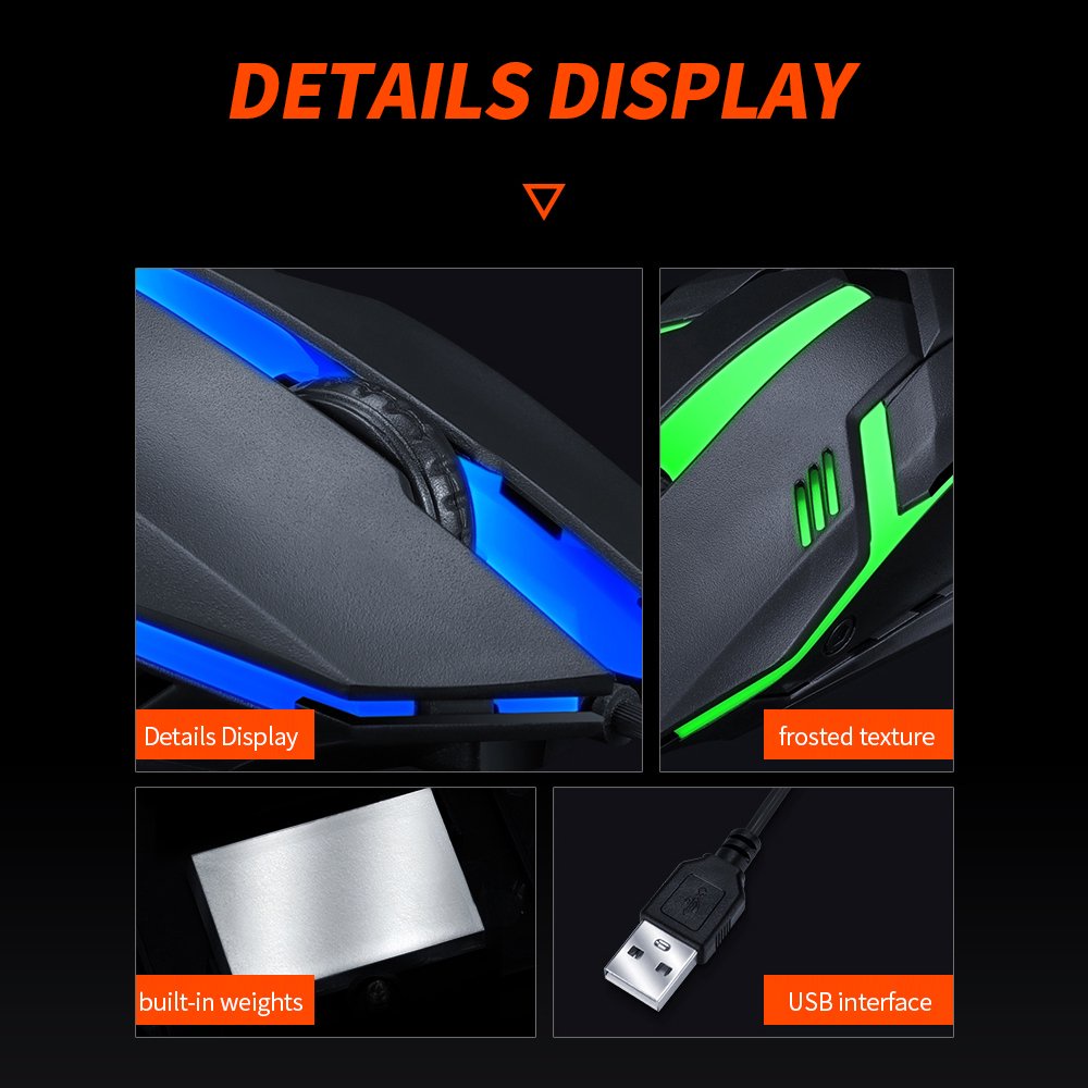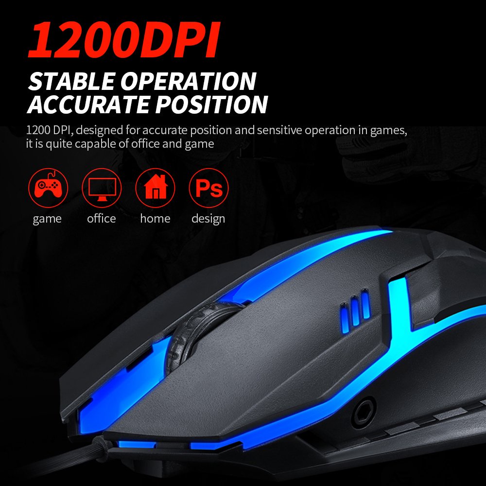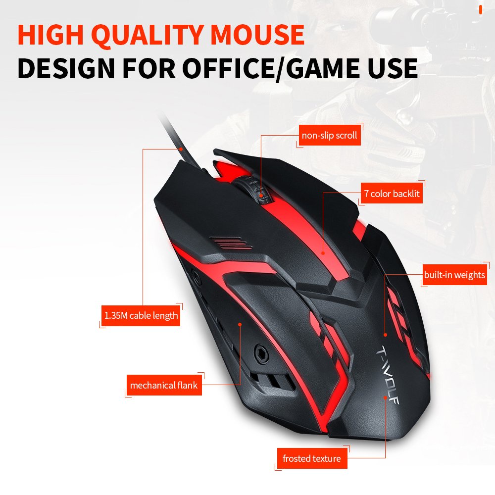 T-WOLF V1 Wired Gaming Mouse 3 Button 7 Colorful Backlight 1200 DPI Office Mouse for Laptop/PC