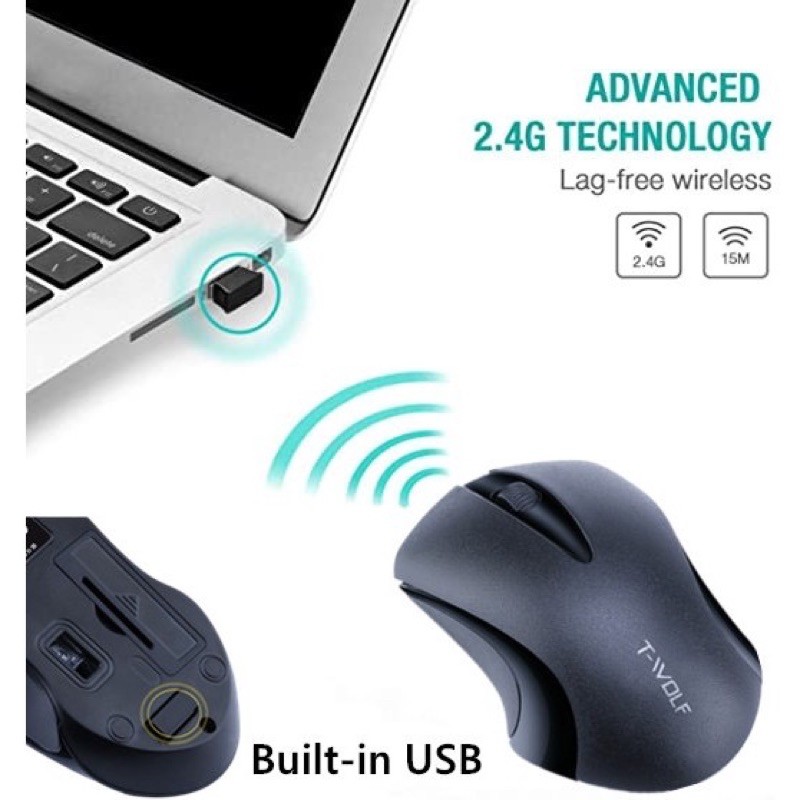 T-Wolf Q2 2.4GHz Wireless Mouse USB Optical Scroll Mice (Q2 mouse)