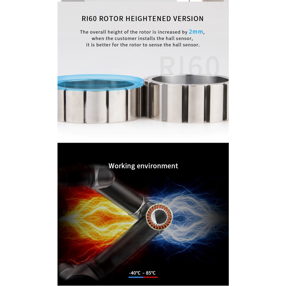 T-motor CubeMars RI60 KV120 frameless Inrunner motor 12V-48V motor BLDC motor with low cogging torqu