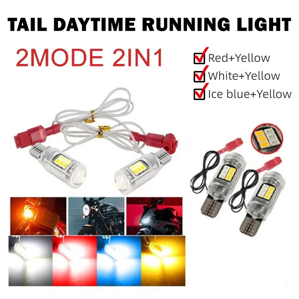 T10/T15 16Leds Dual-color Motorcycle Turn Signal Tail Daytime Running Warning Light Moto Car Modification Accessories