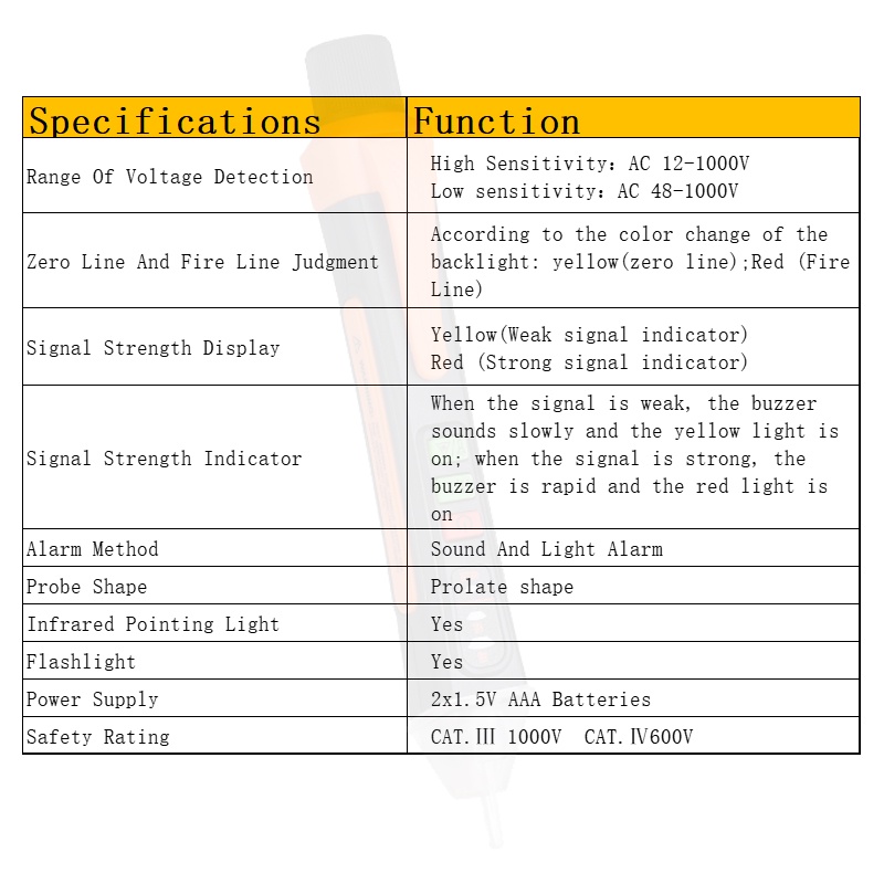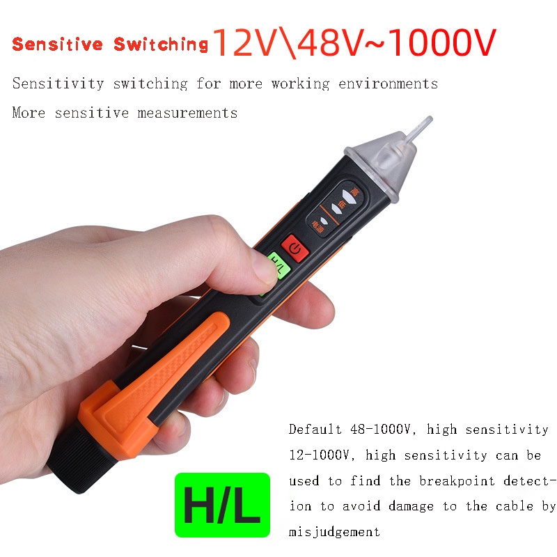 T100 Non-contact Induction Smart Home Electric Test Pen / AC Voltage Test Pen, Breakpoint Voltage Detector, 12-1000V/ Infrared Function & Sound & Light Alarm Electric Test Pen