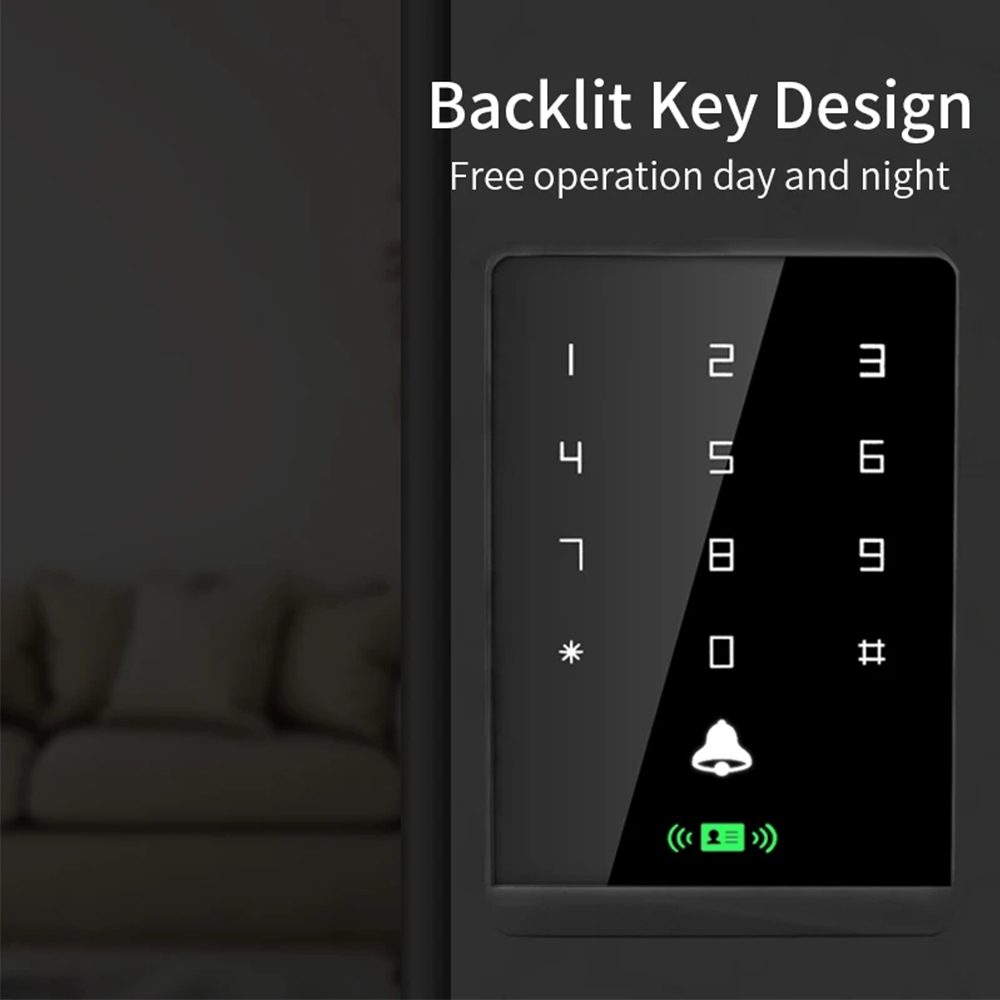 T2DC NFC RFID Card Reader Waterproof 125Khz+13.56Mhz Backlight Touch Key Access Control System Smart Lock Door Opener Keypad