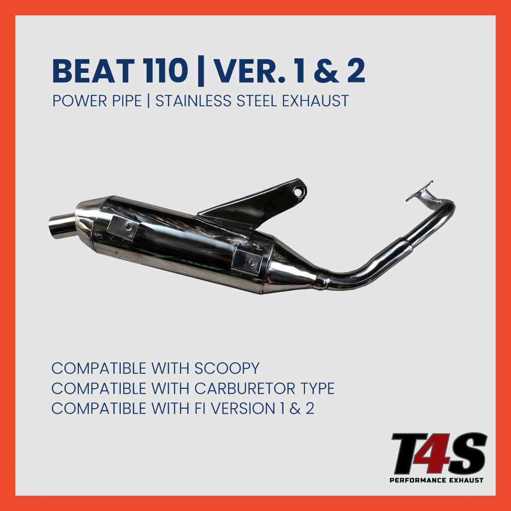 T4S Power Pipe for Honda Beat 110 - Carb/V1/V2