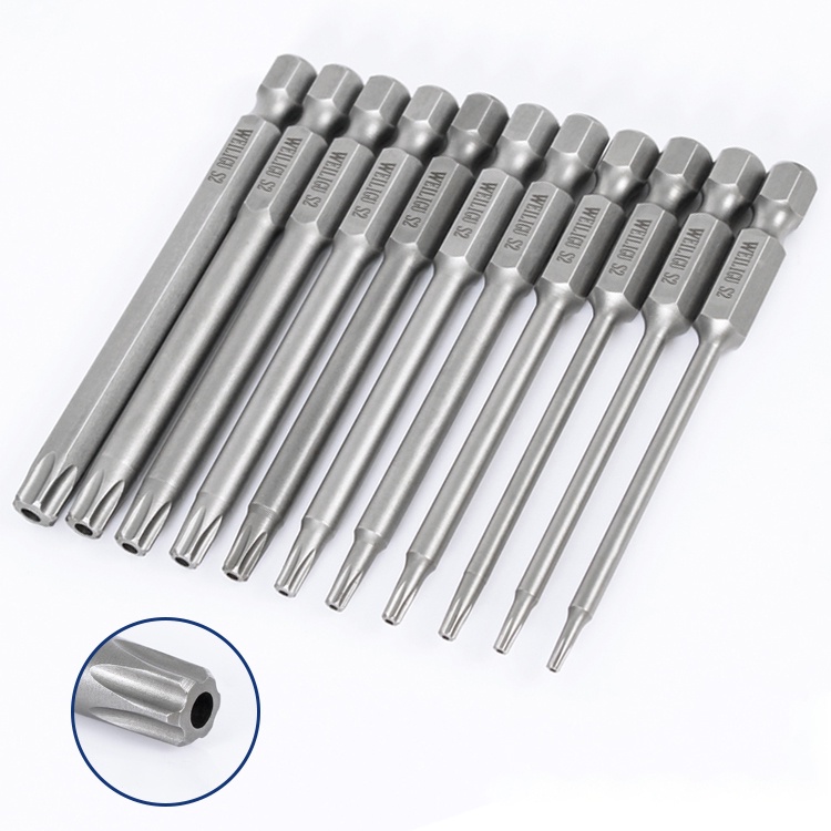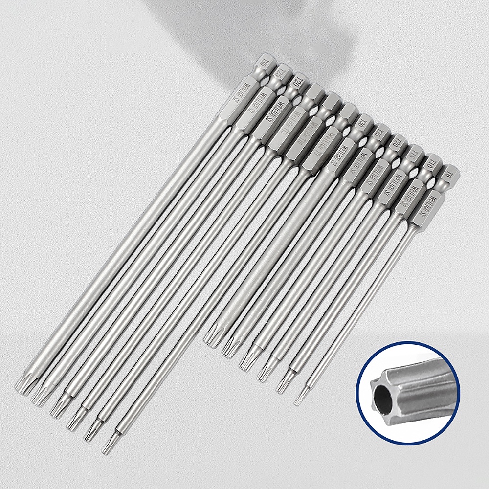 T5-T50 Torx Hollow Magnetic Screwdriver Drill Bits Quick Change Connect 50-200mm
