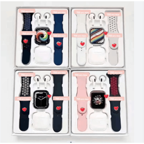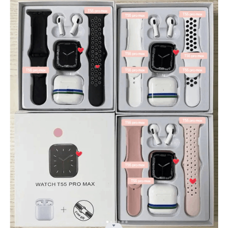 T55 pro max Smart Watch with Pro 4 Earbuds set Hot-sale New Design With 4 colors Options
