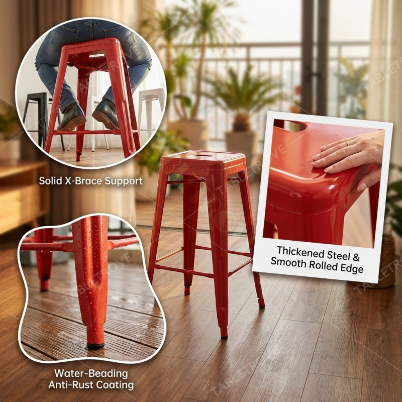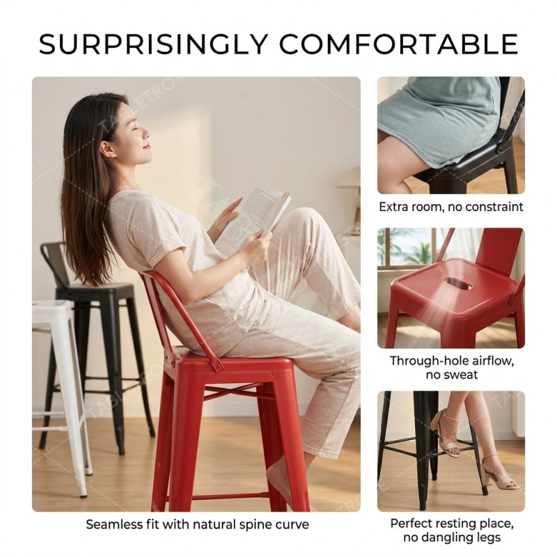 TABLETROVE Bar Stool Metal/Plastic High Chair with Backrest Cushion-Kitchen Cafe Affordable 4-Color