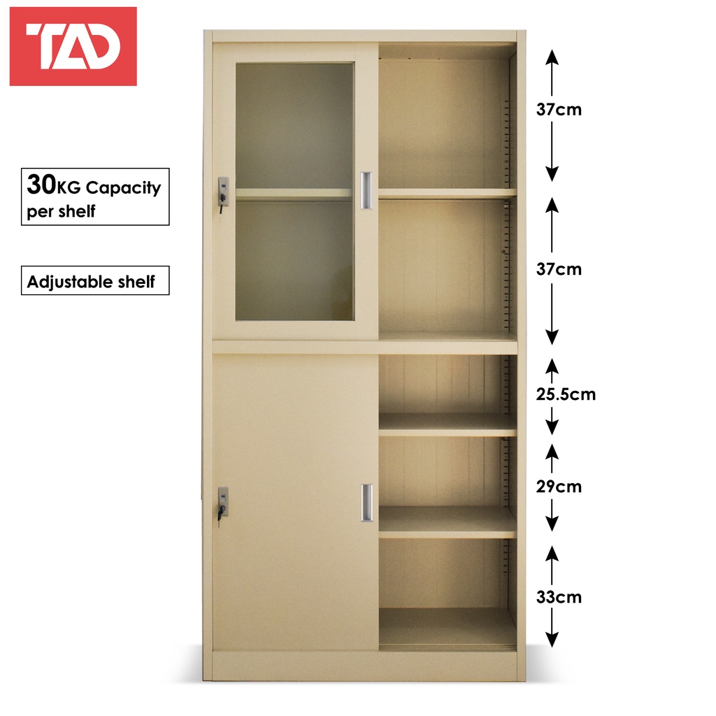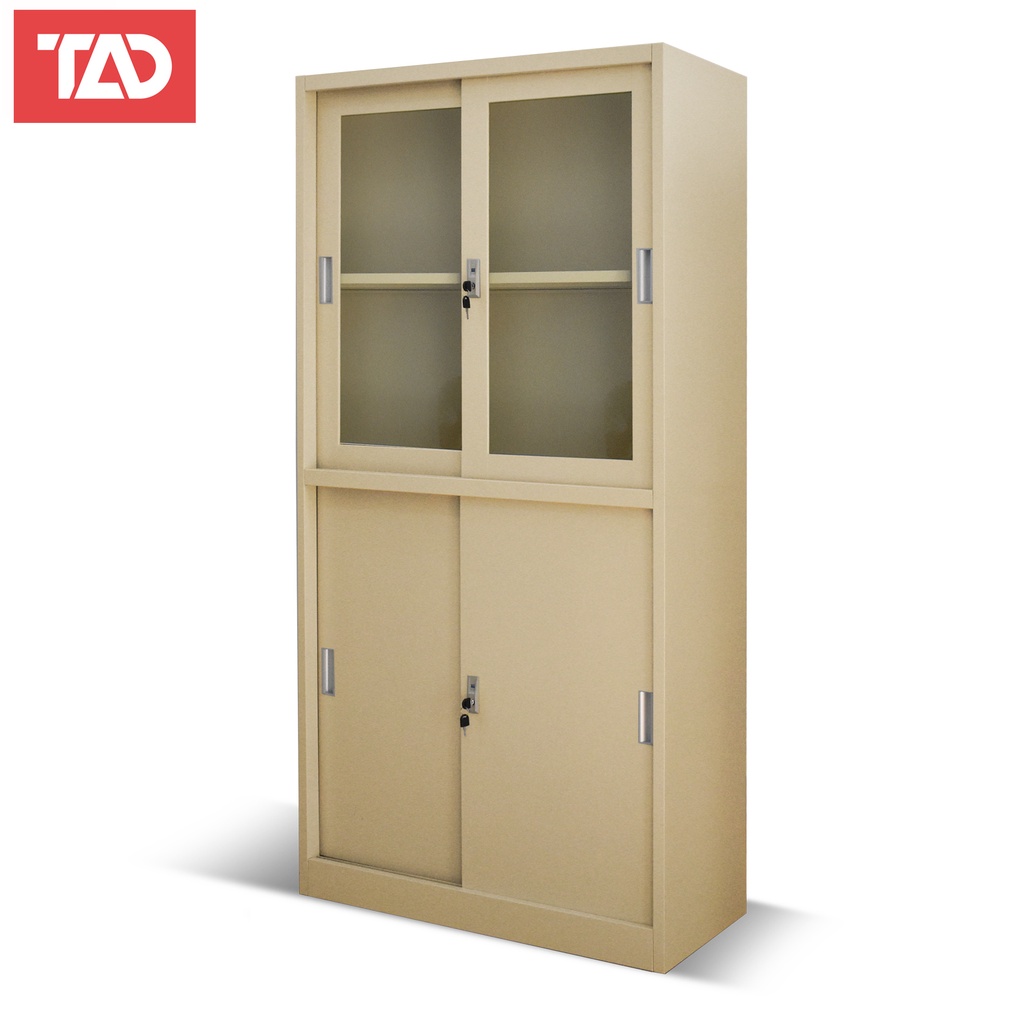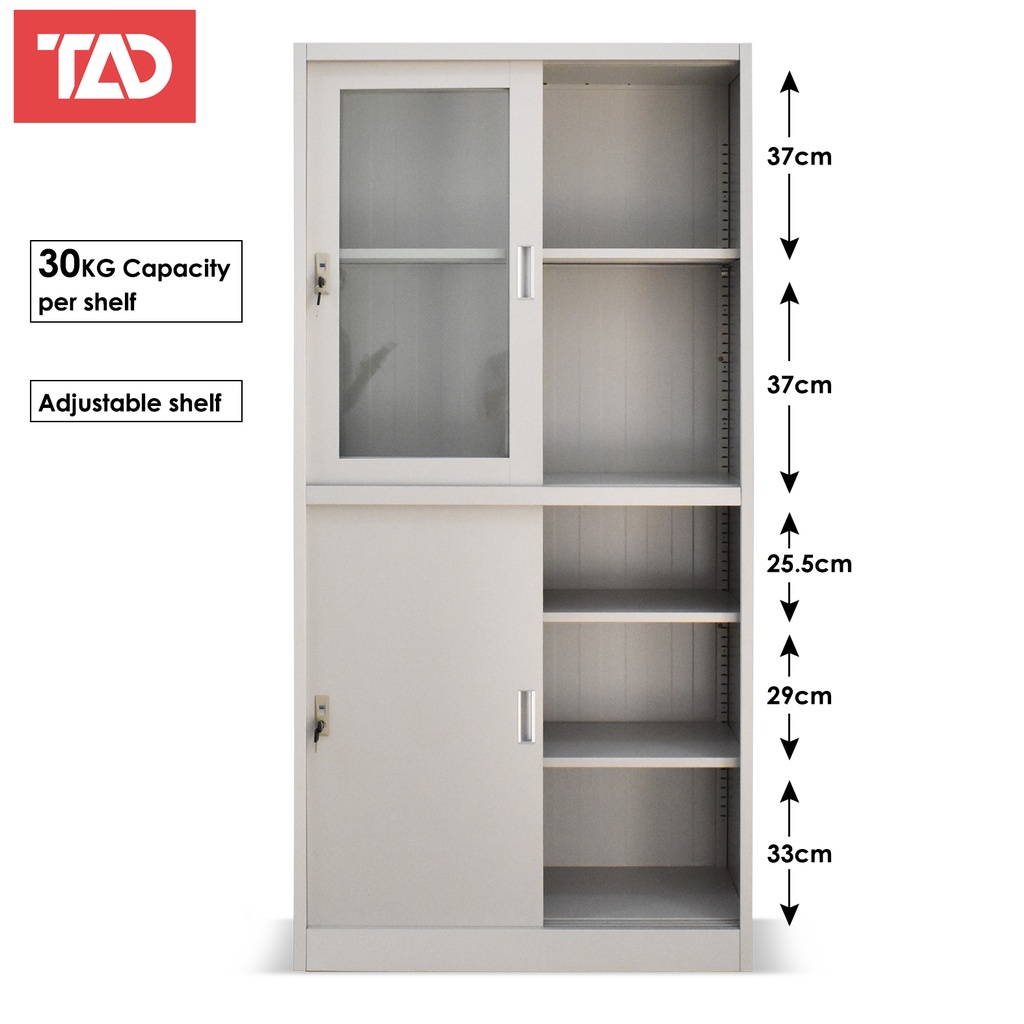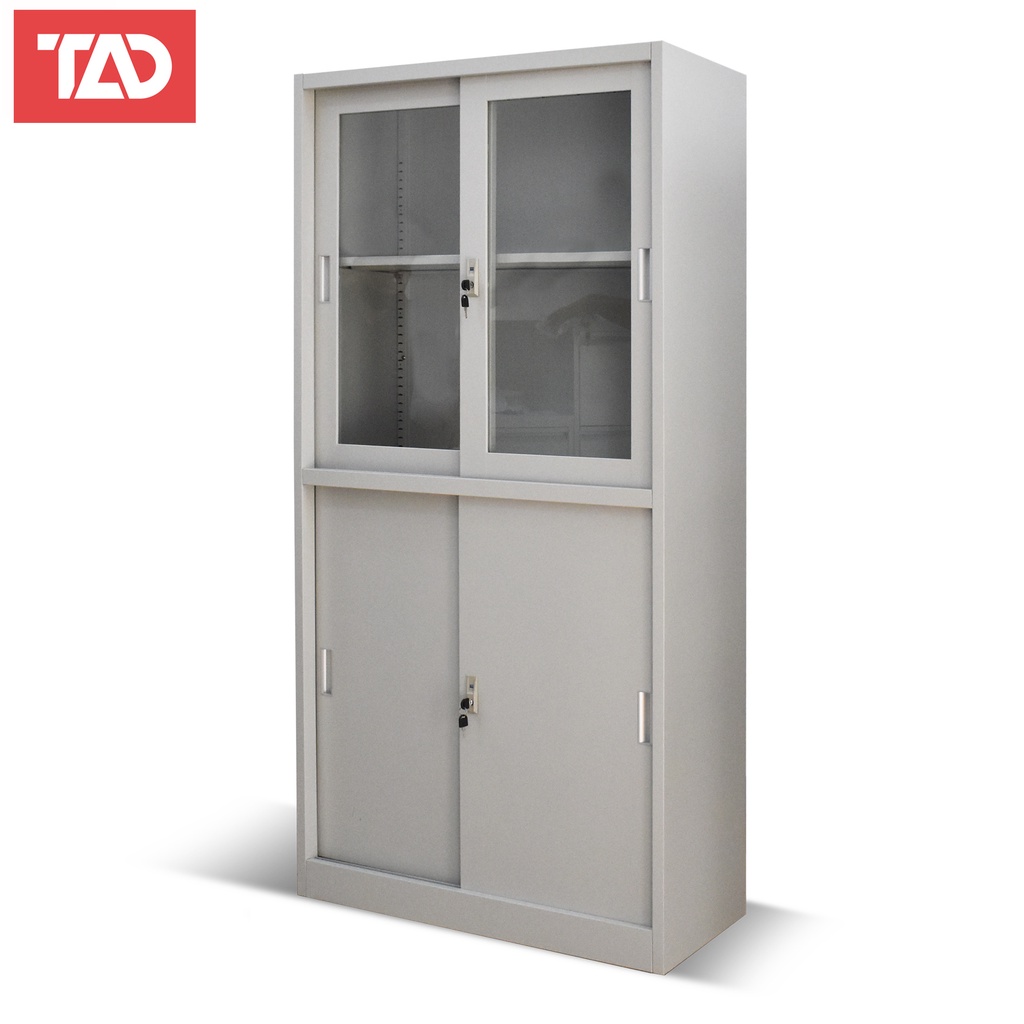 TAD FC-04 STEEL FILLING LOCKER CABINET 4 DOOR 5 SHELVES WITH GLASS, FILLING CABINET, METAL LOCKER.