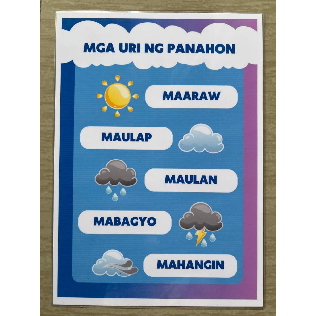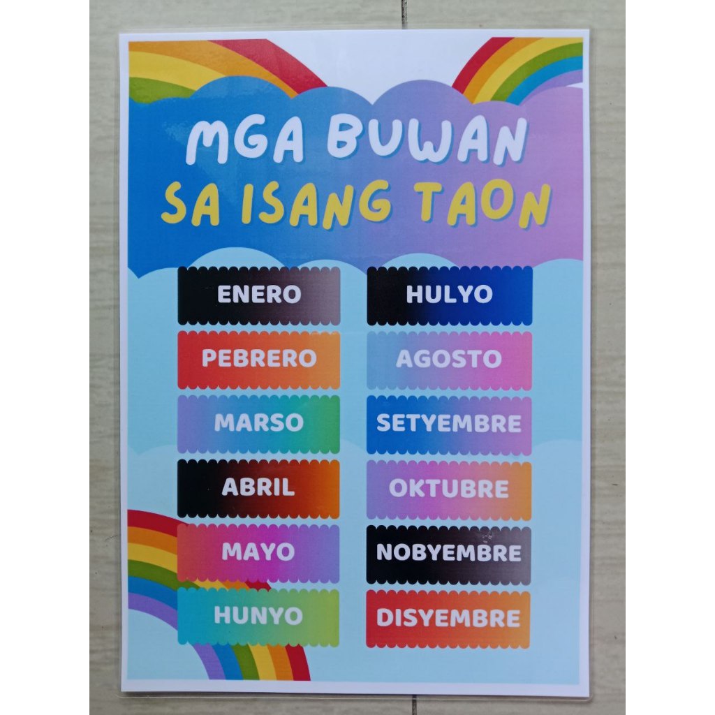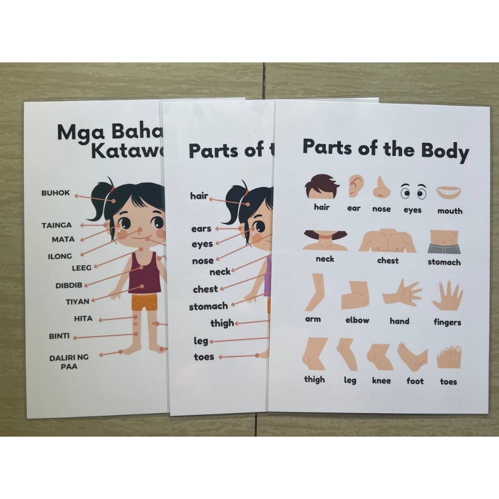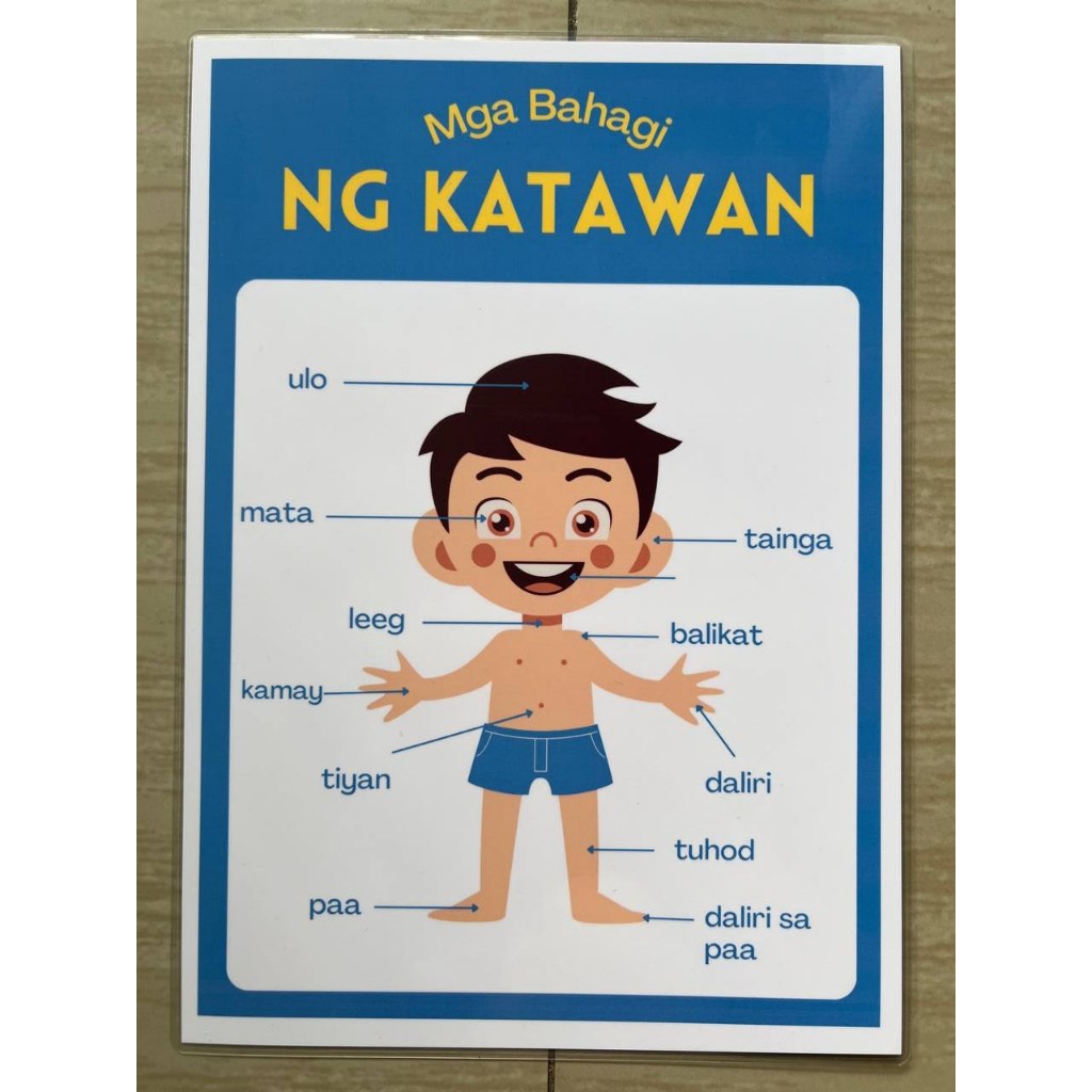 TAGALOG Kulay Bahagi ng Katawan Educational learning materials for kids Laminated A4 Size Chart