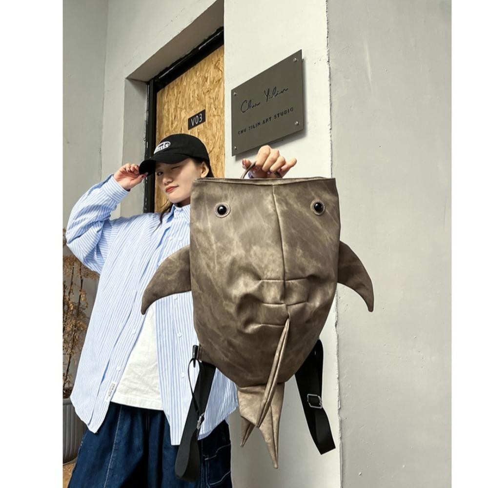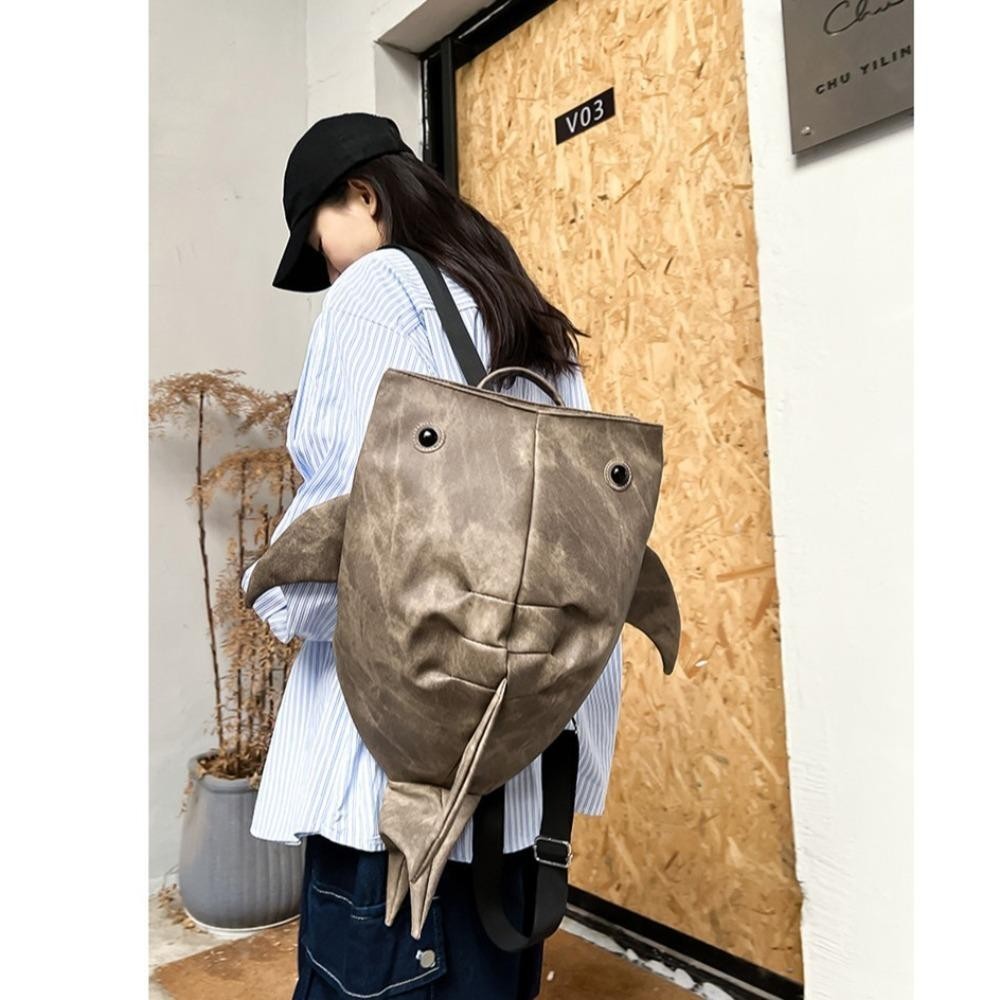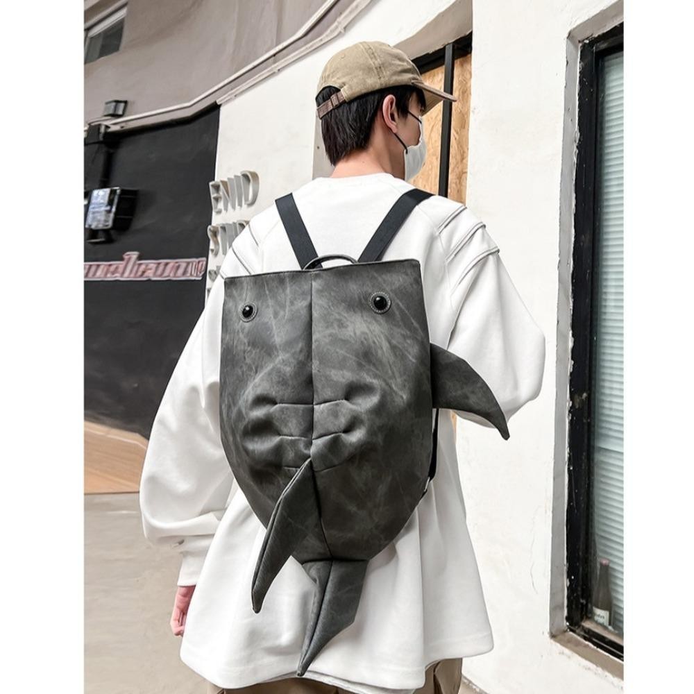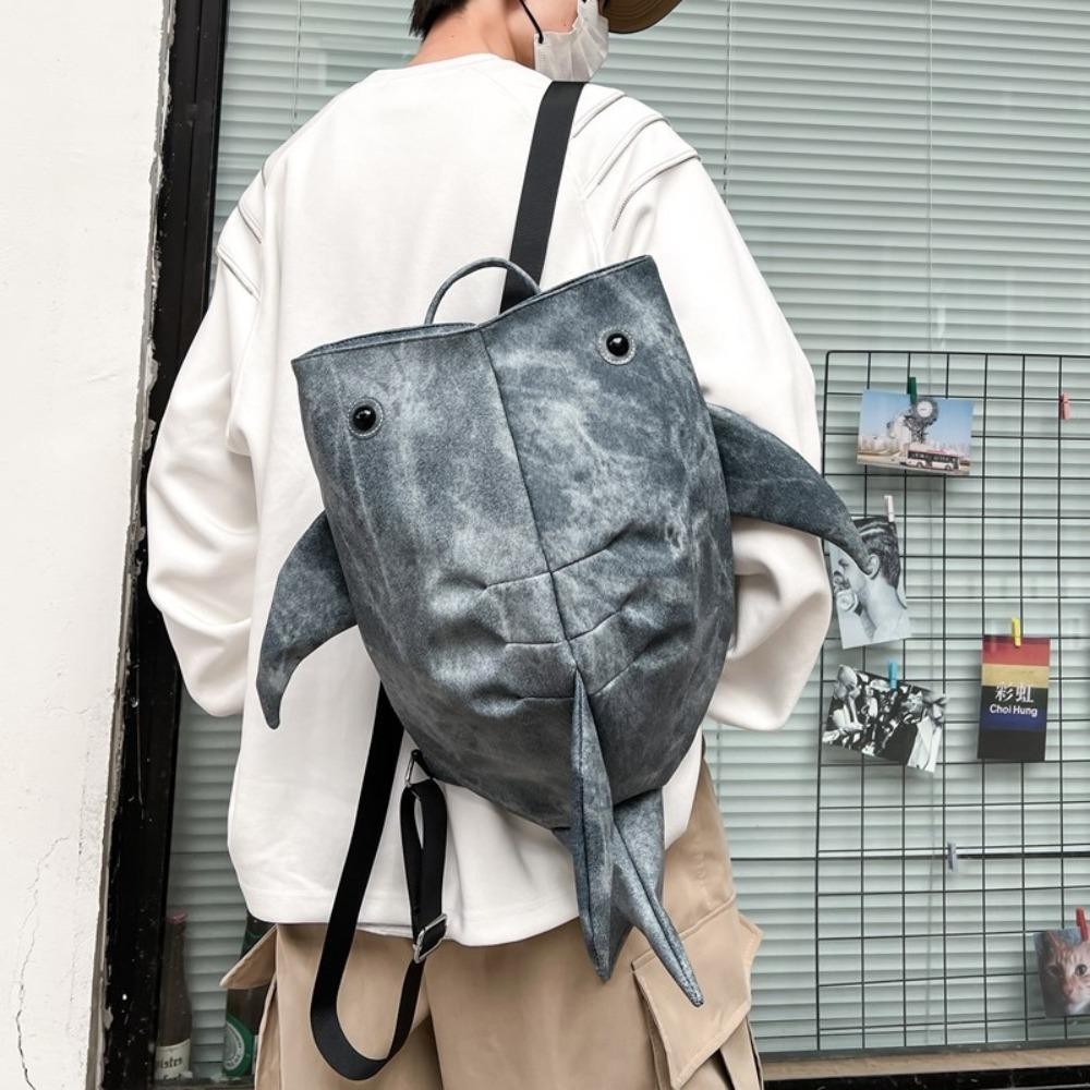TAMAKO Animal Whale Shark Shape Backpack, Large Capacity Trendy Zipper Shark Knapsack, Cloth Student Cool College Backpack