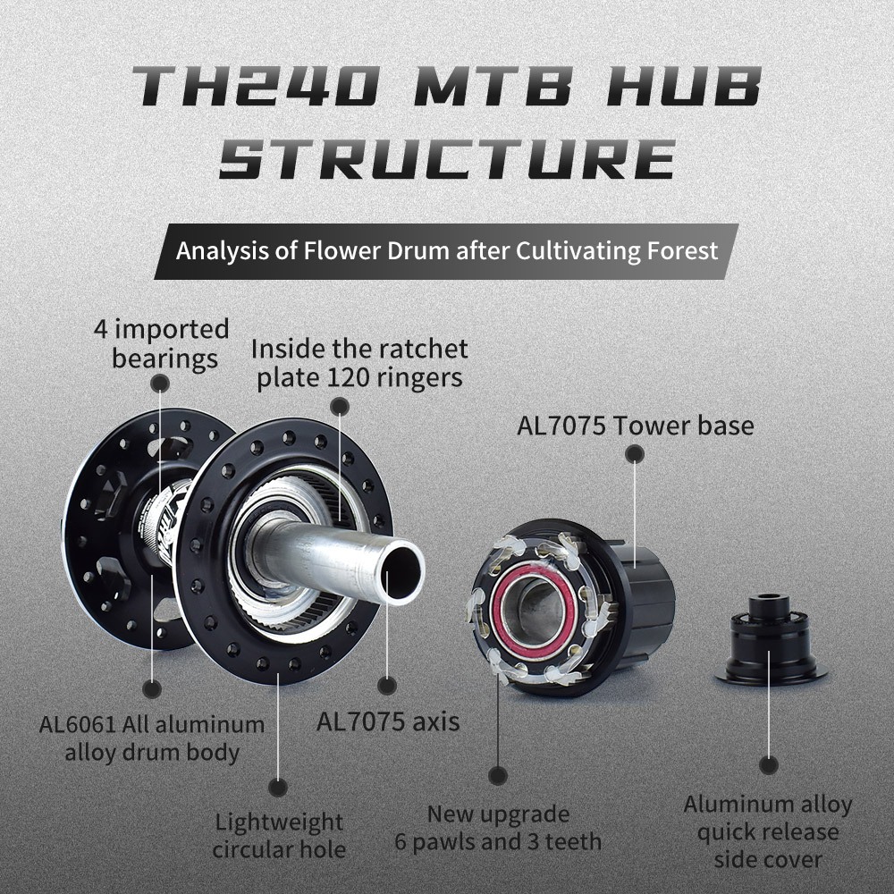 TANKE Th240 MTB wheel hub 6 claws 6 bearings 32 36 holes ultra light wheel hub 120 buzzing sound sealed bearing box wheel hub 7-12 speed box flywheel Qr quick release 142Mm all axle wheel