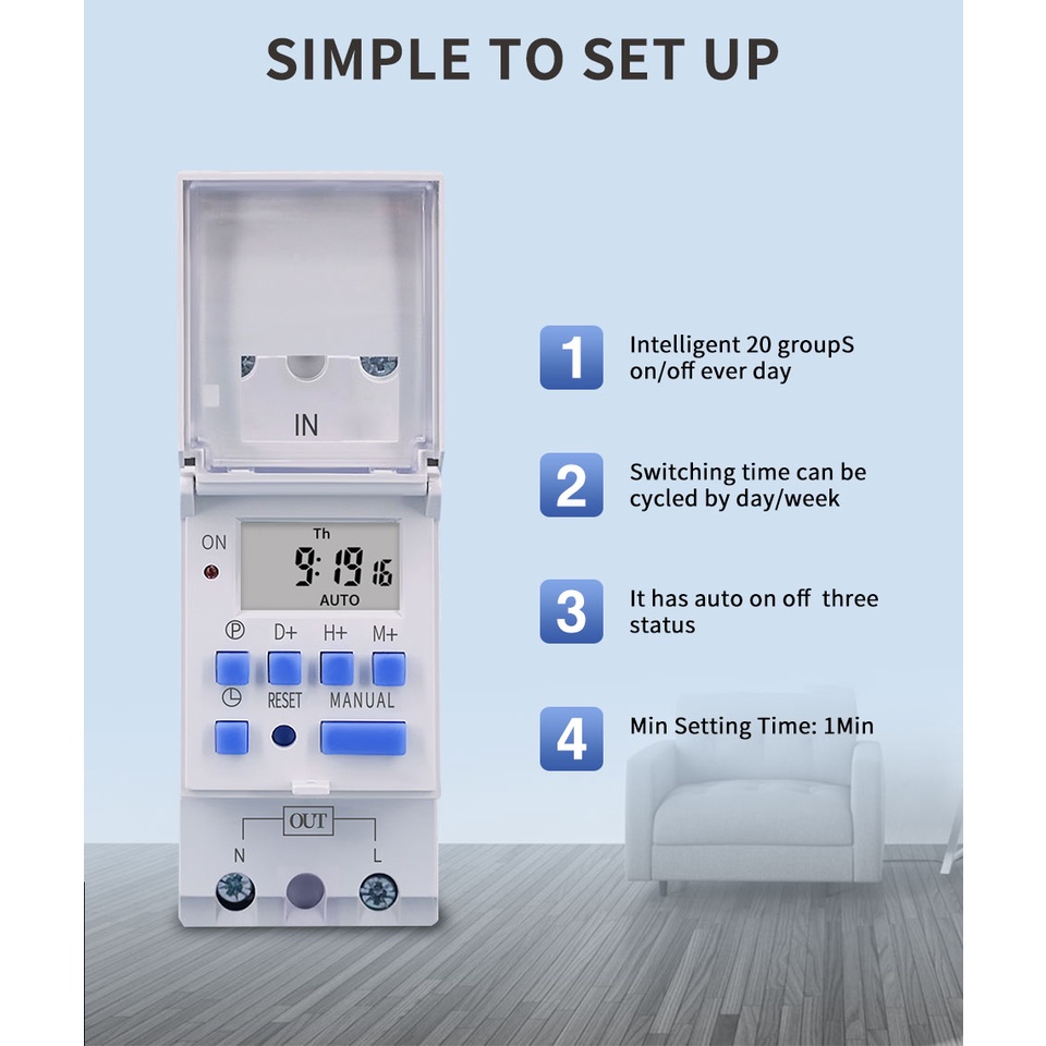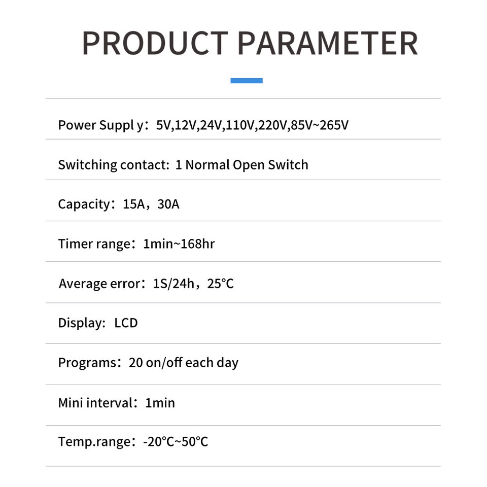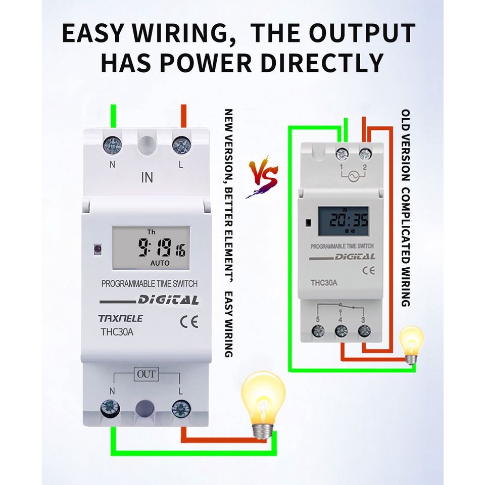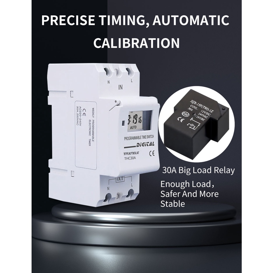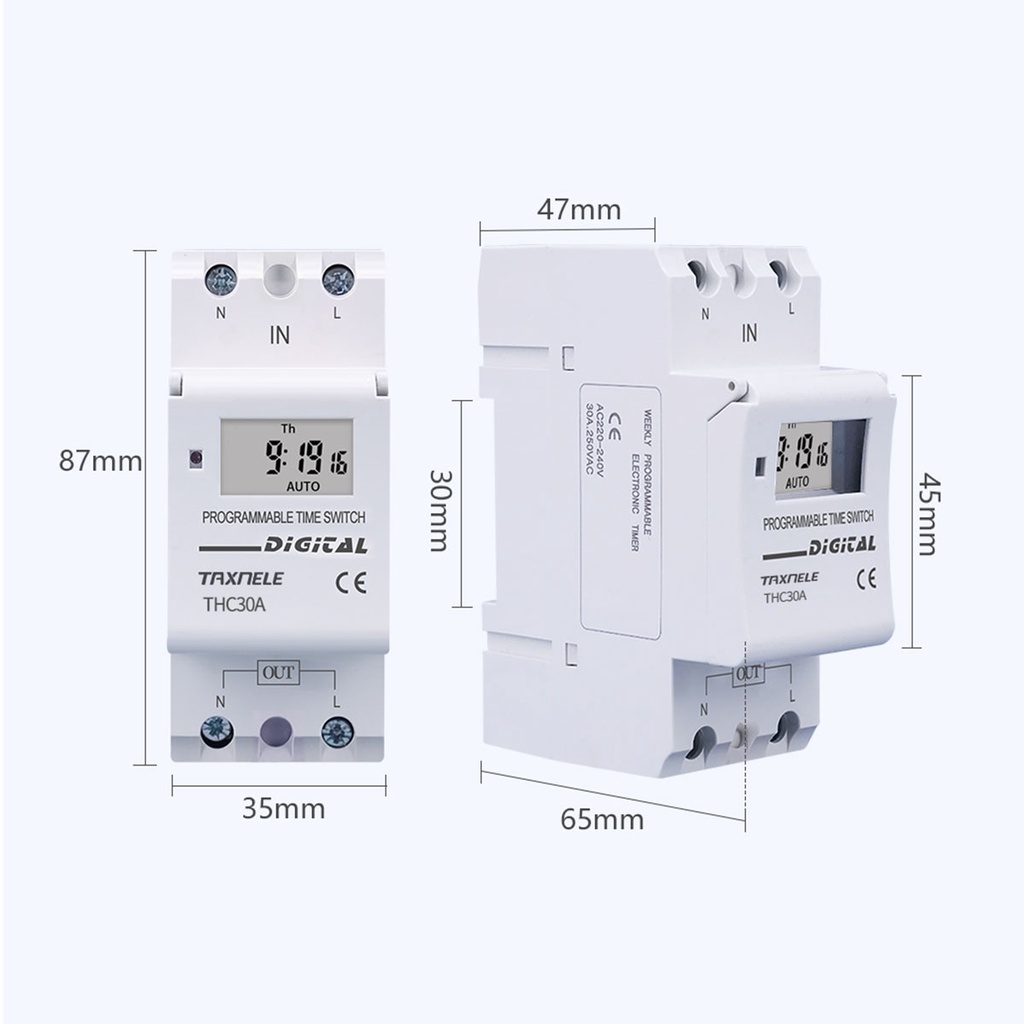 TAXNELE THC30A timer Din Rail Weekly 7 Days Programmable Digital TIME SWITCH AC 220V 12V 24V 16A 30A