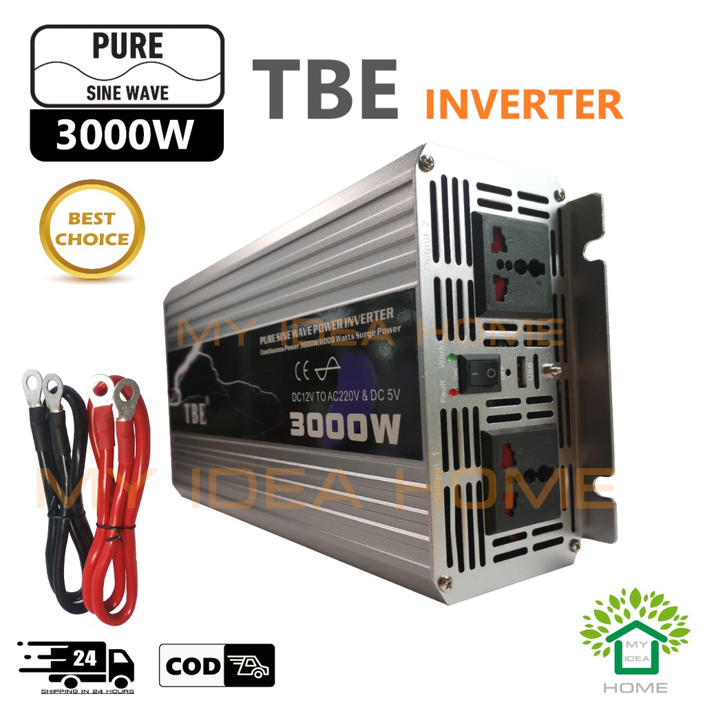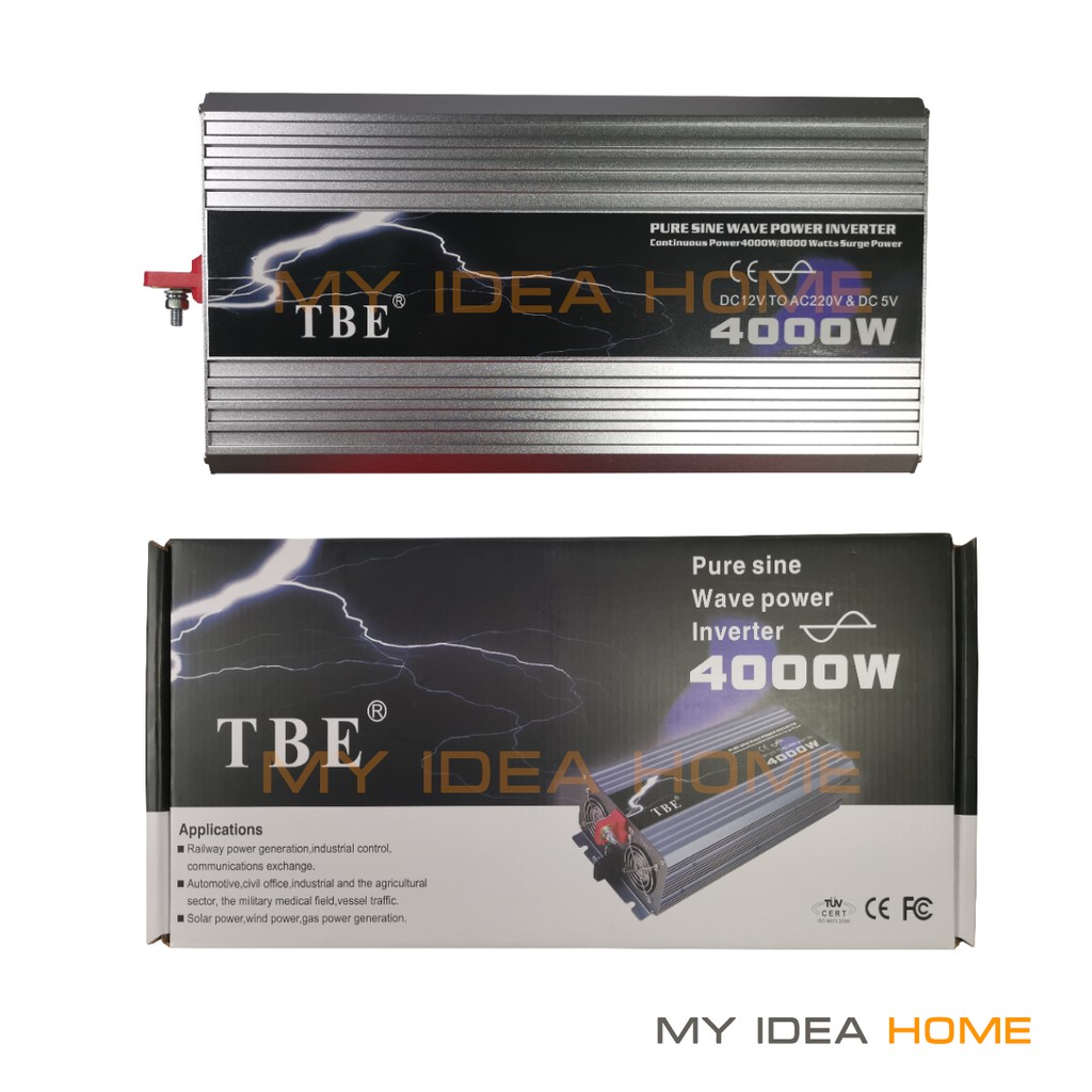 TBE 3000W 4000W Pure Sine Wave Car Power Inverter 12V DC to 220V AC and DC5V W/USB T12P COD