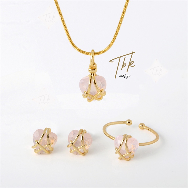 TBK Jewelry Set 18K Gold Diamond Heart Necklace Earrings Adjustable Ring Set For Women 730St