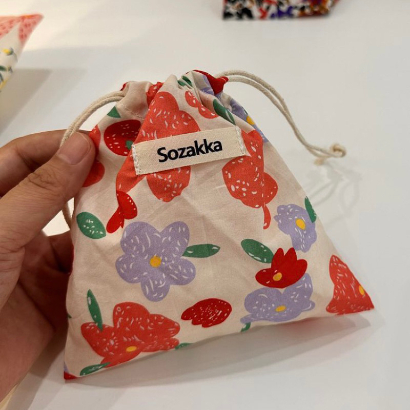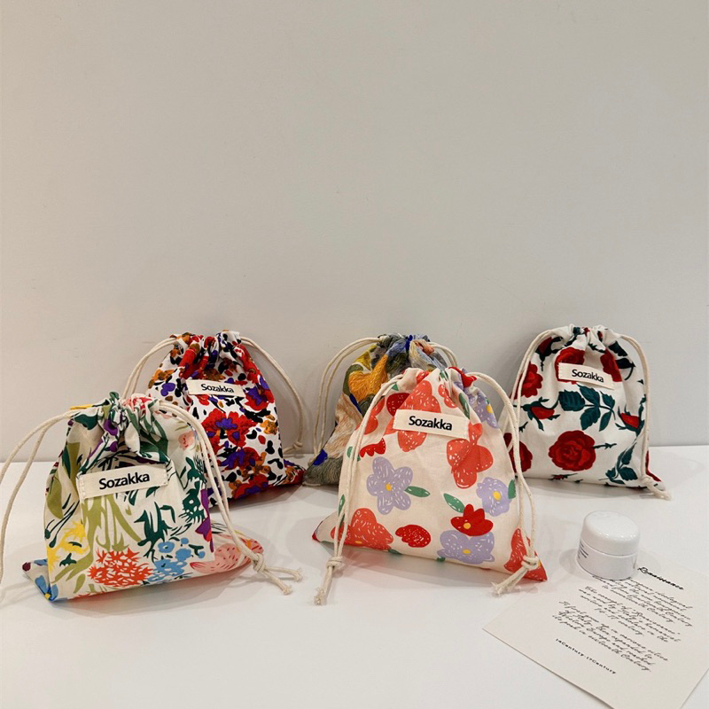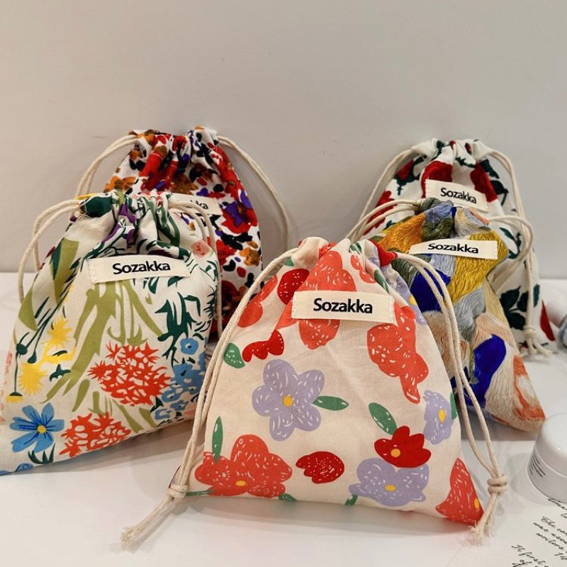 TBM Floral Drawstring Mini Pouch Pochette Bag Travel Organizer