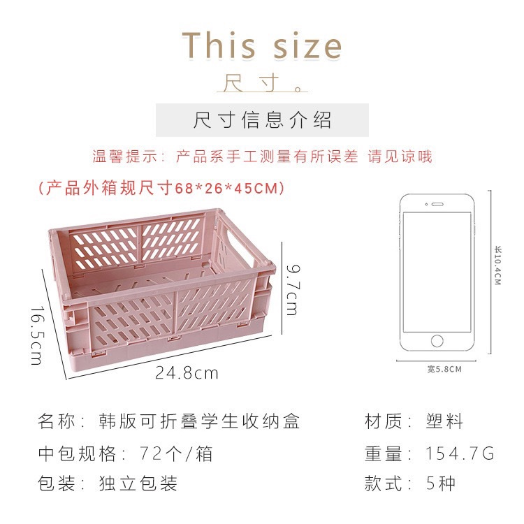 TBM Pastel Color Foldable Tray Crate Desk Organizer Storage Box