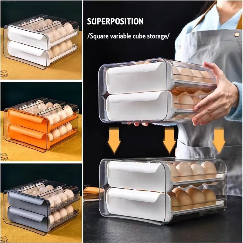 TC 2 Layer Grids Egg Storage Box Household Kitchen Organizer for Kitchen Egg Holder