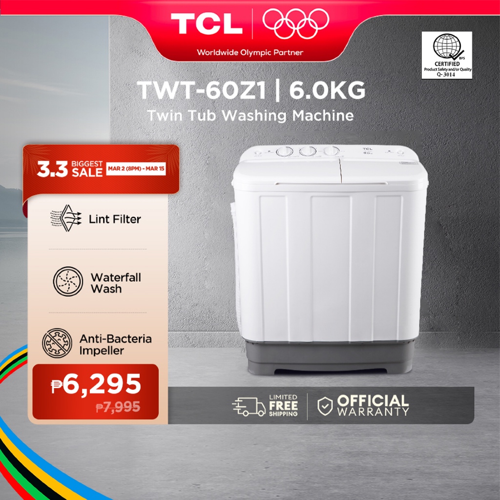 TCL 6.0 KG Twin Tub Washing Machine - TWT-60Z1, Powerful Washing, Powerful Rinse, Super Dry