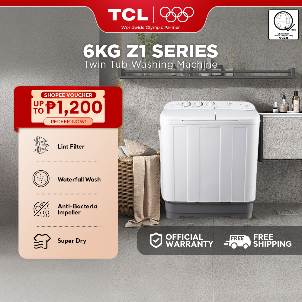 TCL 6KG Twin Tub Washing Machine TWT-60Z1 -Powerful Washing, Magic Filter, Powerful Rinse