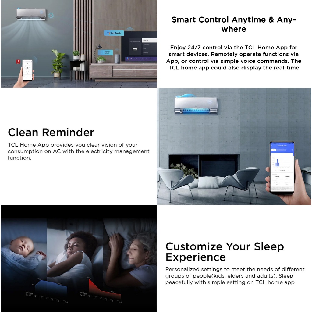 TCL Aircon CHSD/FAI CoolPro , FreshIN+ Easy Clean Gentle Breeze , Smart Control IoT (1.0hp, 1.5hp)