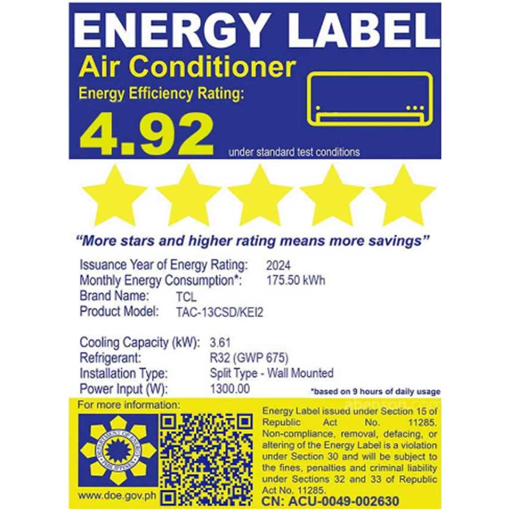TCL TITAN KEI-S 2025 - AI FULL DC INVERTER SPLIT TYPE AIRCON -1.5HP ( TAC-13CSD/KEI-S )