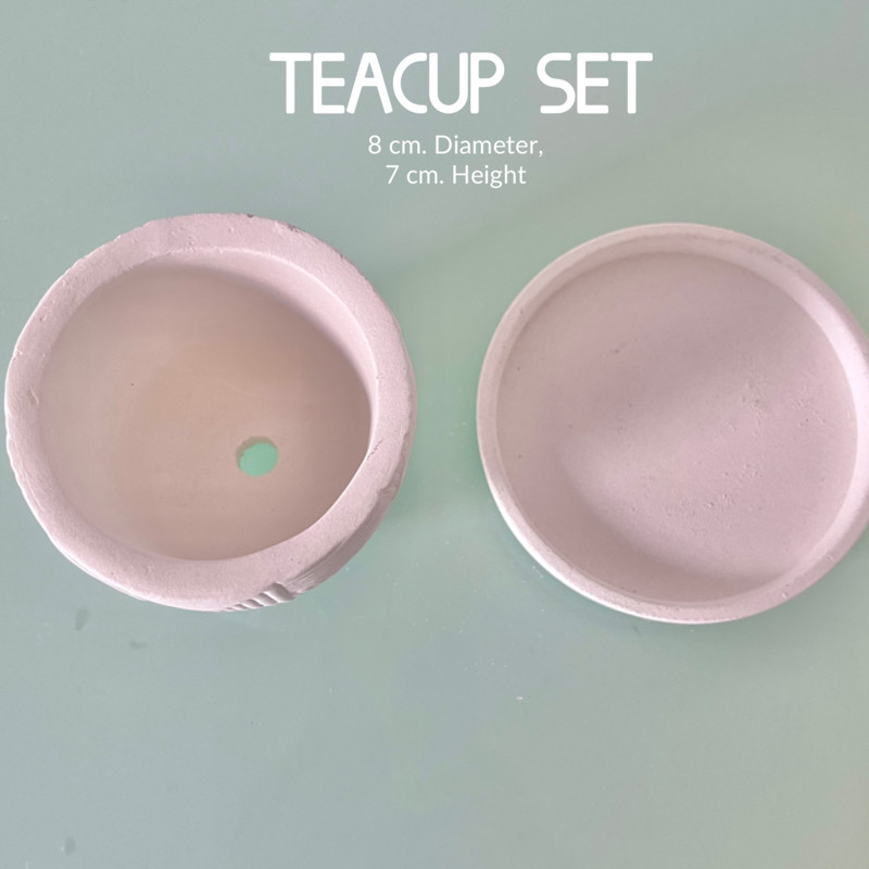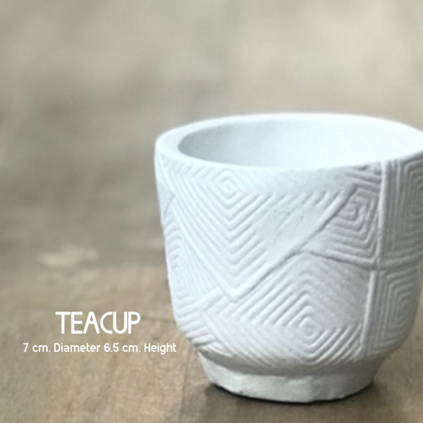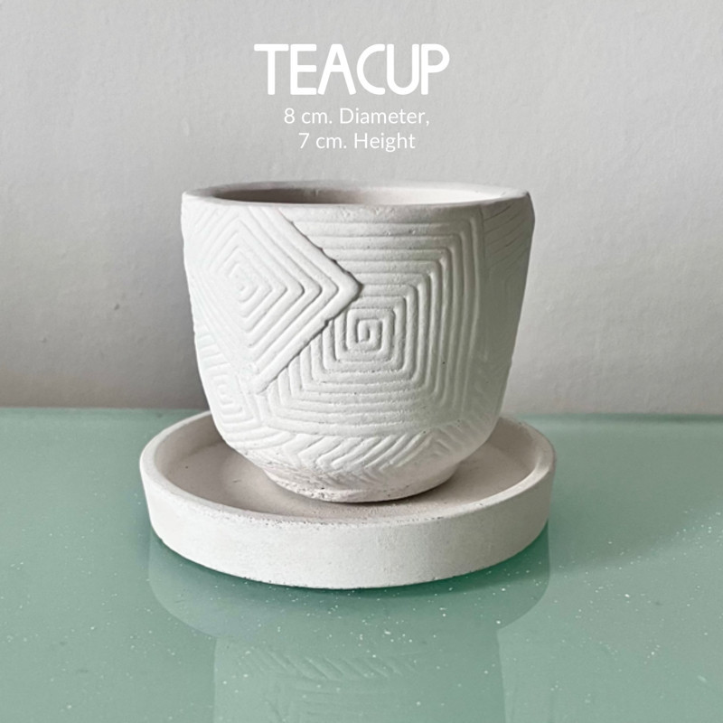 TEACUP POT - Mini Concrete Pot with Drain Hole, Cute Pots, Elegant White Pot with Catch Plate