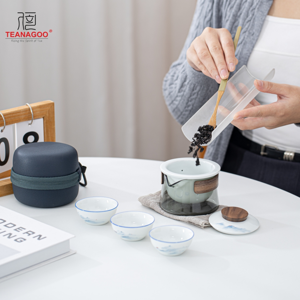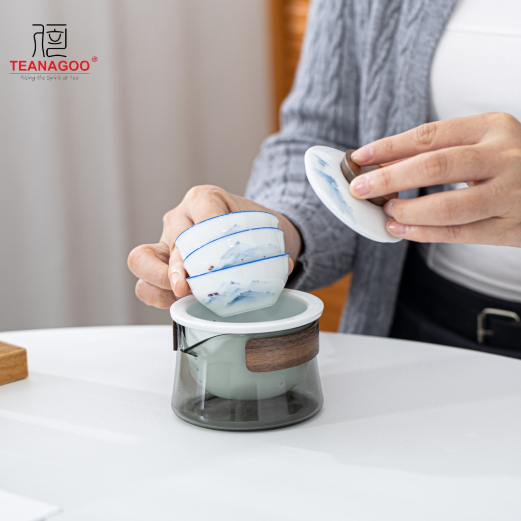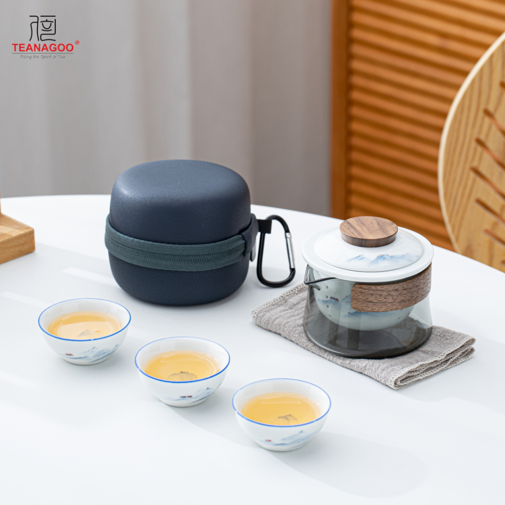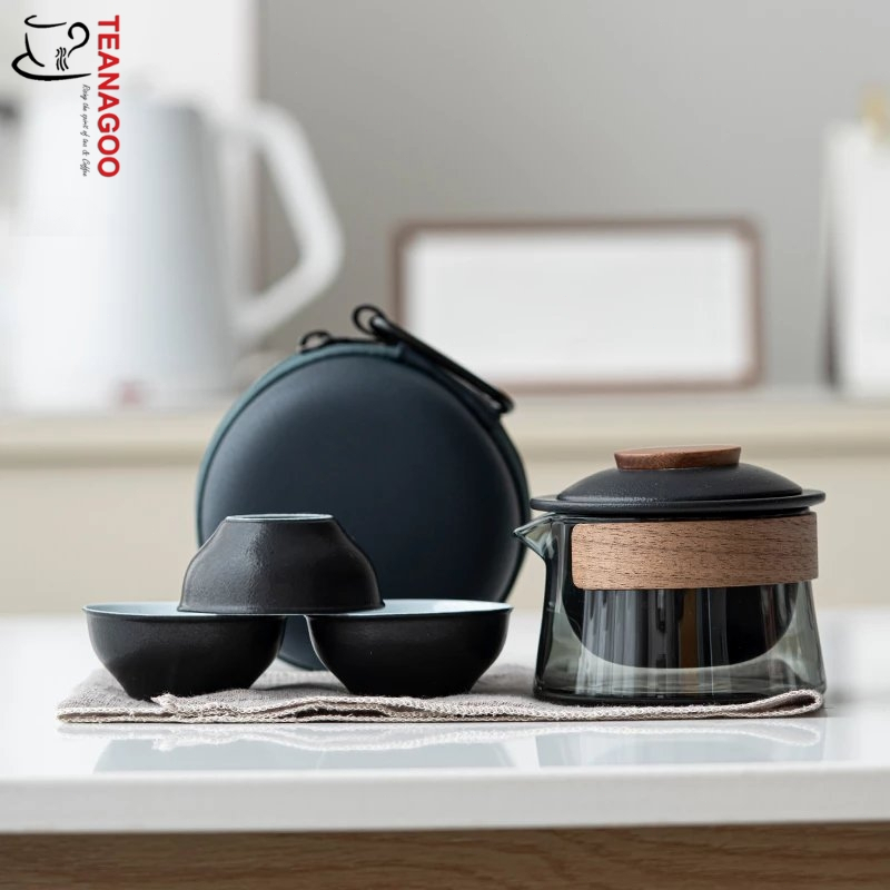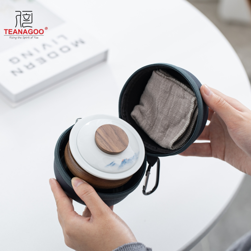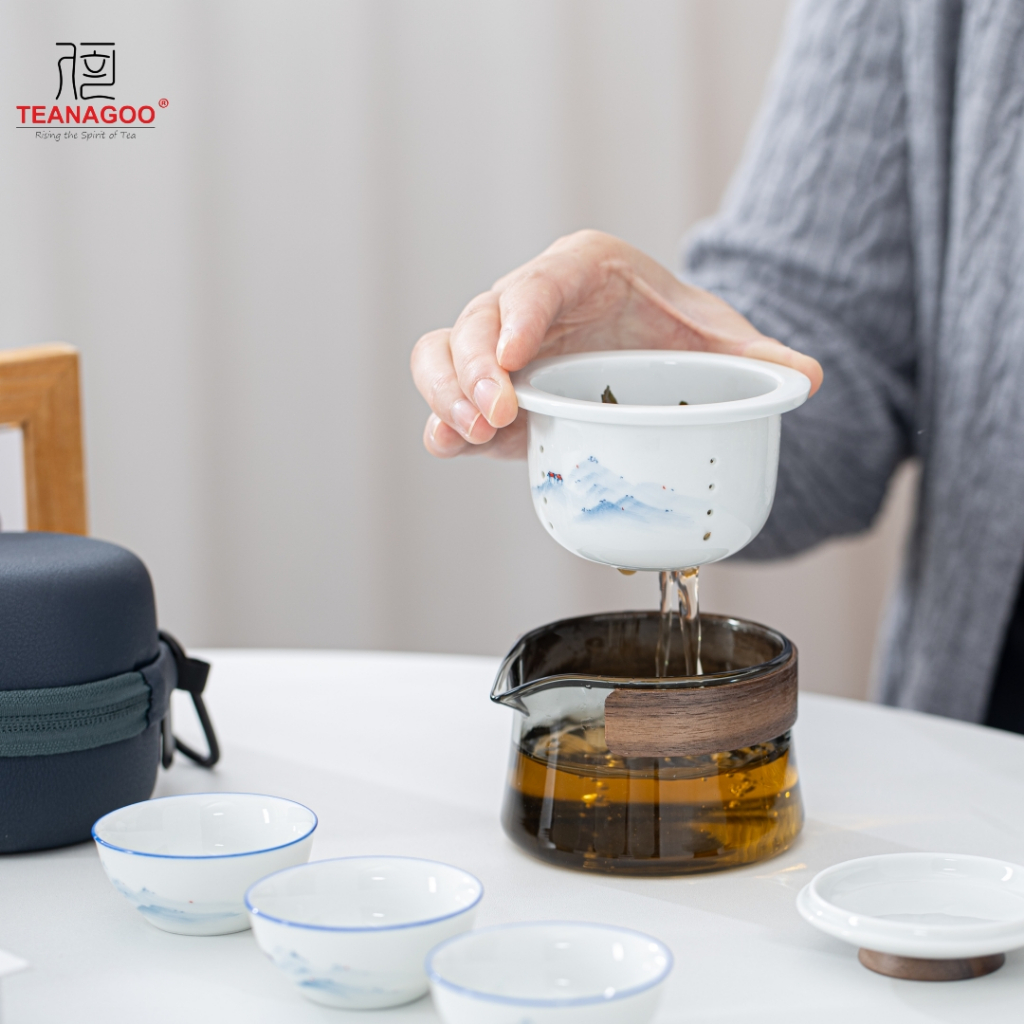 TEANAGOO Ceramic tea Coffee Cup Crack Cup Portable Tea Set Outdoor Travel Kung Fu Tea Set with Filter Teacup Glass (belt pack)