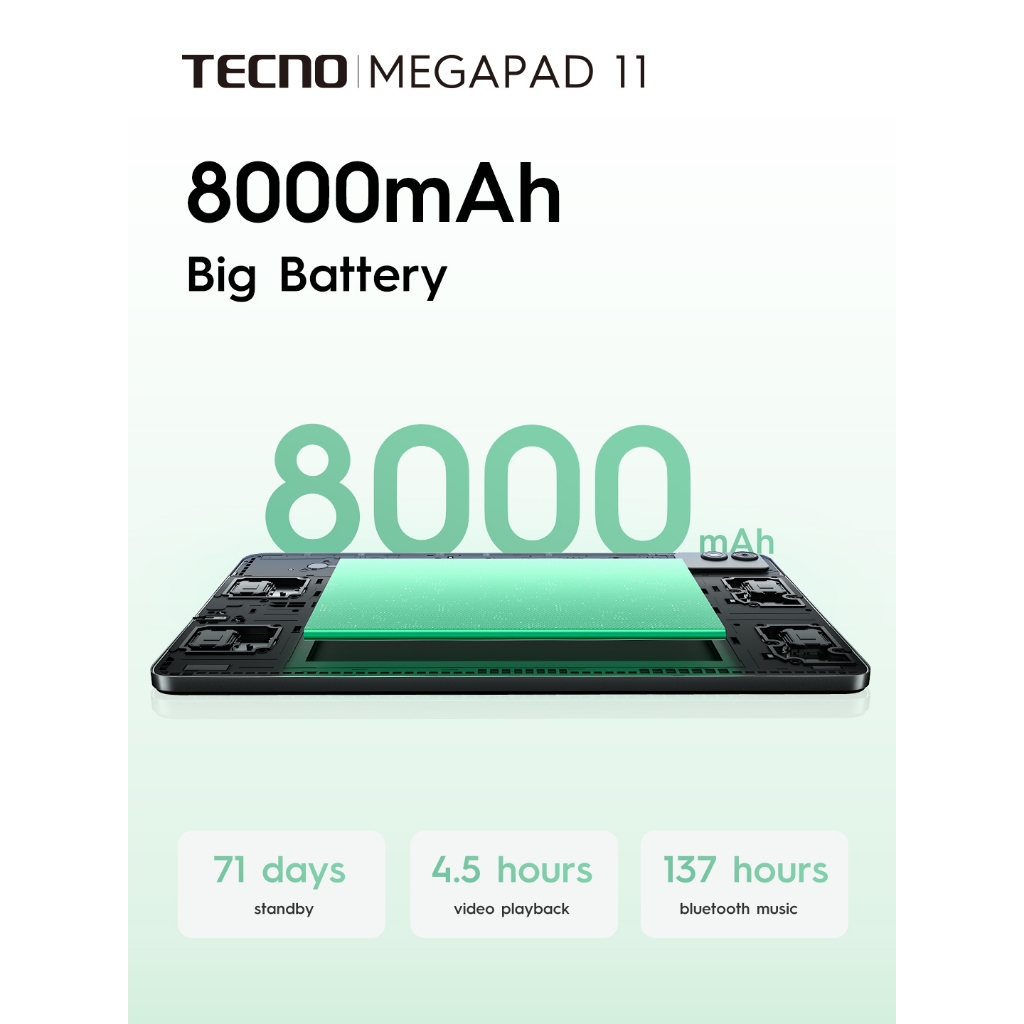 TECNO Mega Pad 11 (8GB RAM + 128/256GB ROM) | MTK 99 | 11" 90Hz FHD+ Display | 8000mAh Big Battery