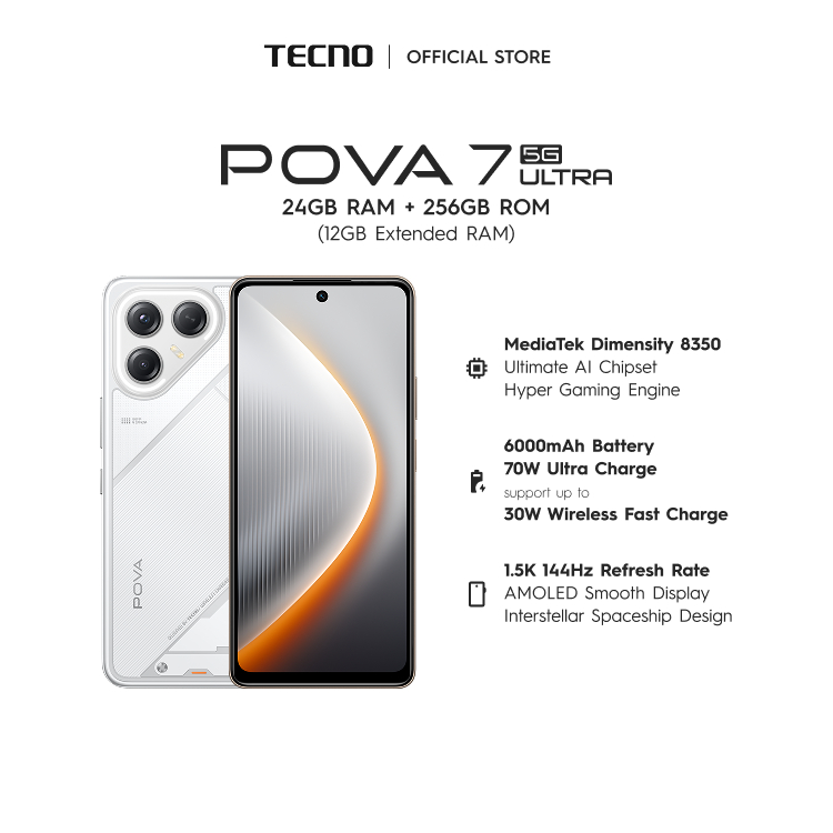 TECNO Pova 7 Ultra 5G 24GB (12+12)256 | MTK 8350 Ultimate | 144Hz 1.5K AMOLED | 6000mAH | IP64