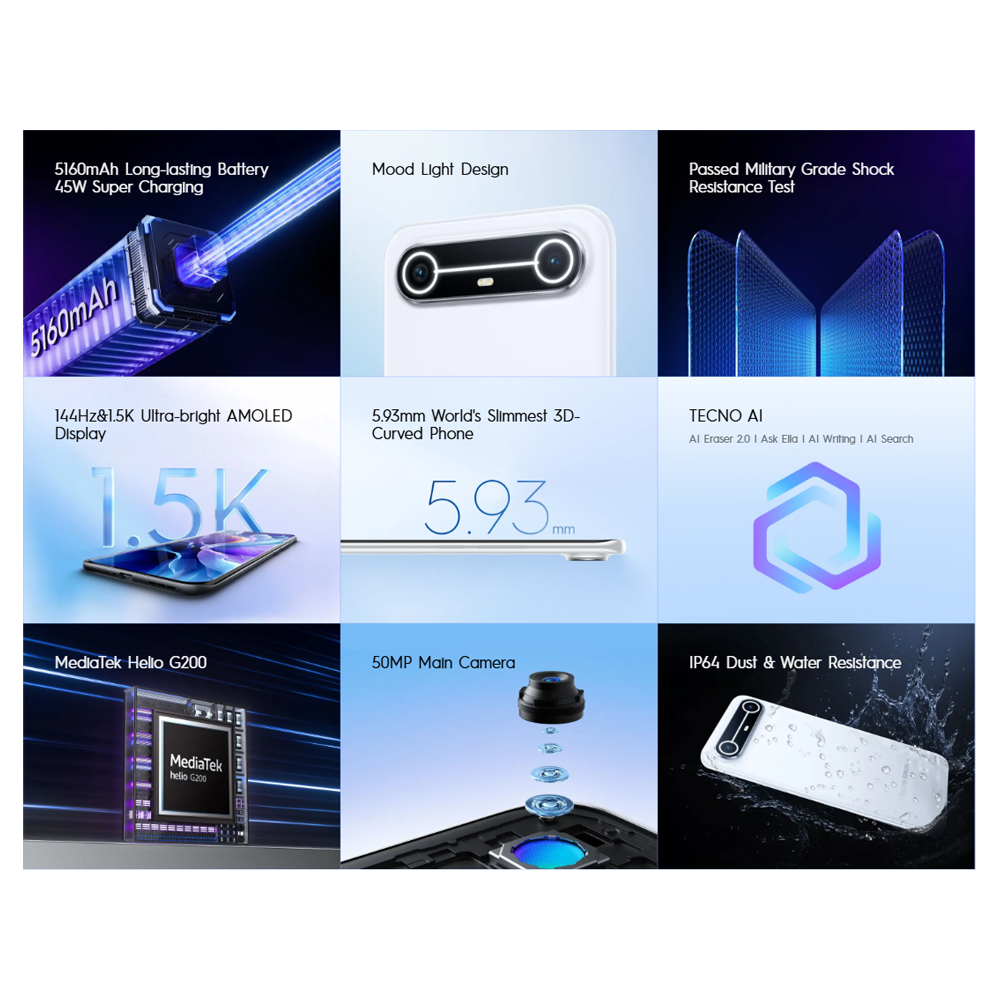 TECNO SPARK SLIM SMARTPHONE | 8GB RAM, 256GB ROM I MediaTek Helio G200 I 6.78" & 1.5K AMOLED Display