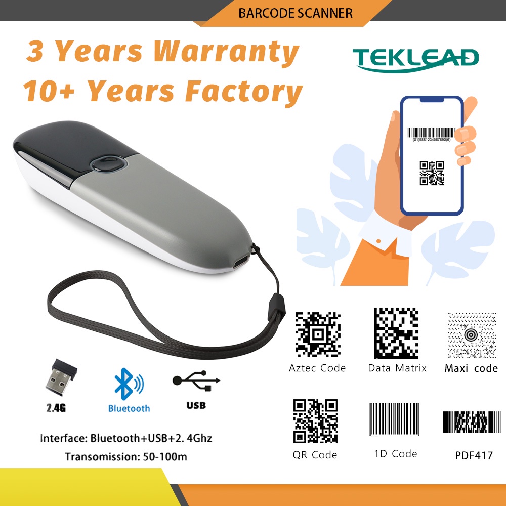 TEKLEAD Pocket Portable 2D Bluetooth Barcode Scanner 2.4G Wireless for 1D 2D QR Code Reader Androdi IOS Windows System