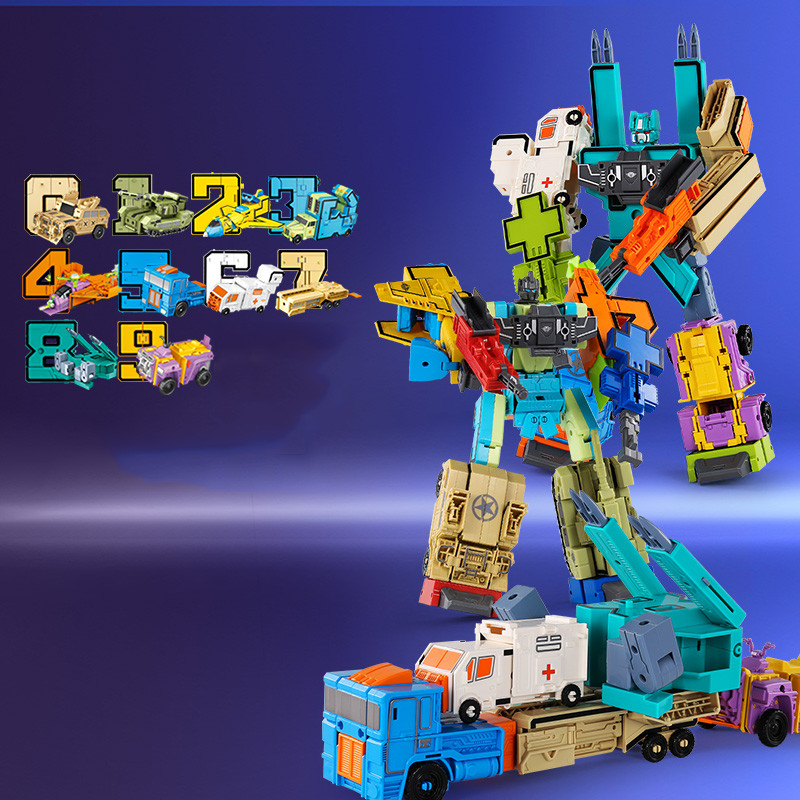 TEMI 0-9 Full Set Number Robot Toy 10 Pcs Digital Assembly Educational oys Car Robot Tank Boy Toy