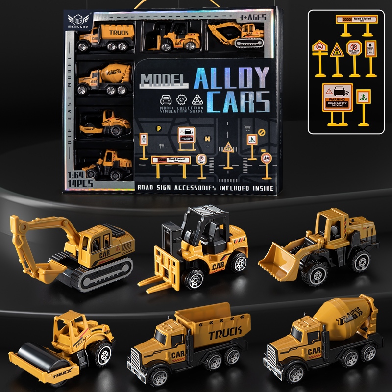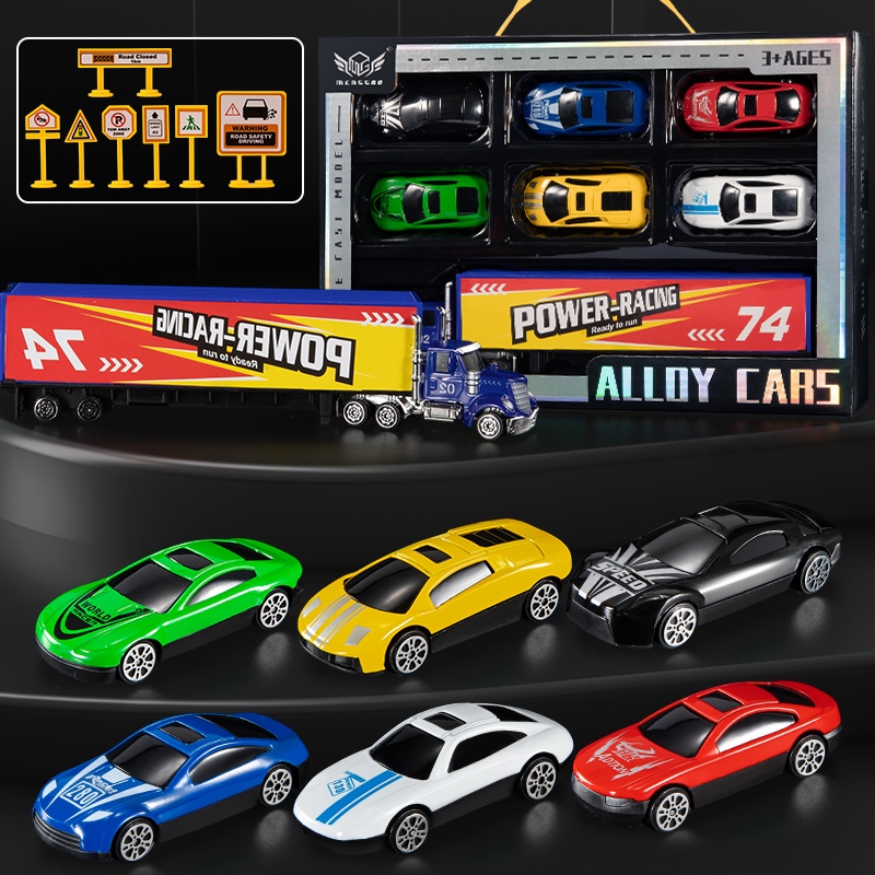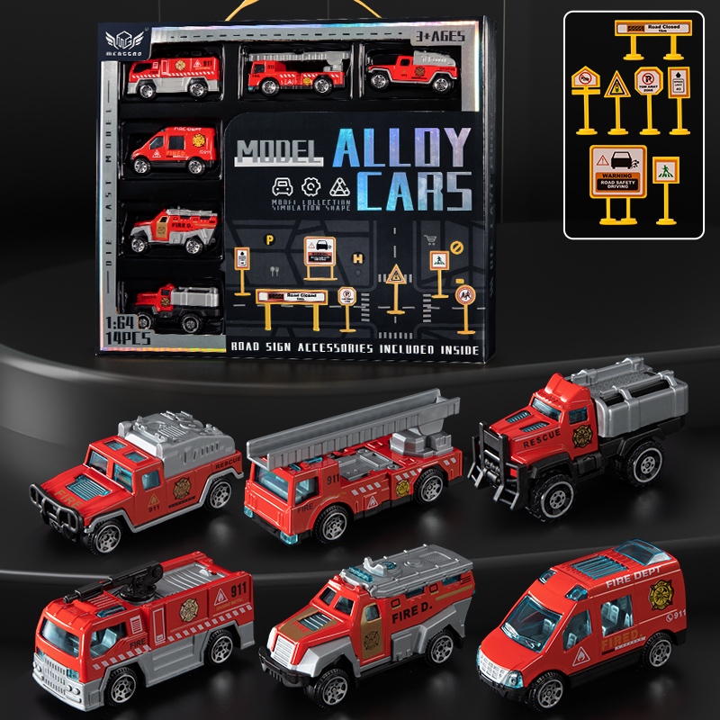 TEMI 6pcs Die Casting Transporter Toy Car Engineering Vehicle Ambulance Fire Truck Racing Police Car Alloy Miniature Toy Car Model Set for Children