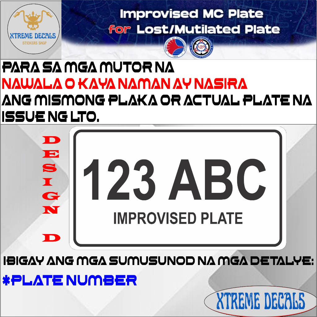 TEMPORARY MOTORCYCLE PLATE 2023 NEW LTO FORMAT New Size Standard (ACRYLIC PLATE)