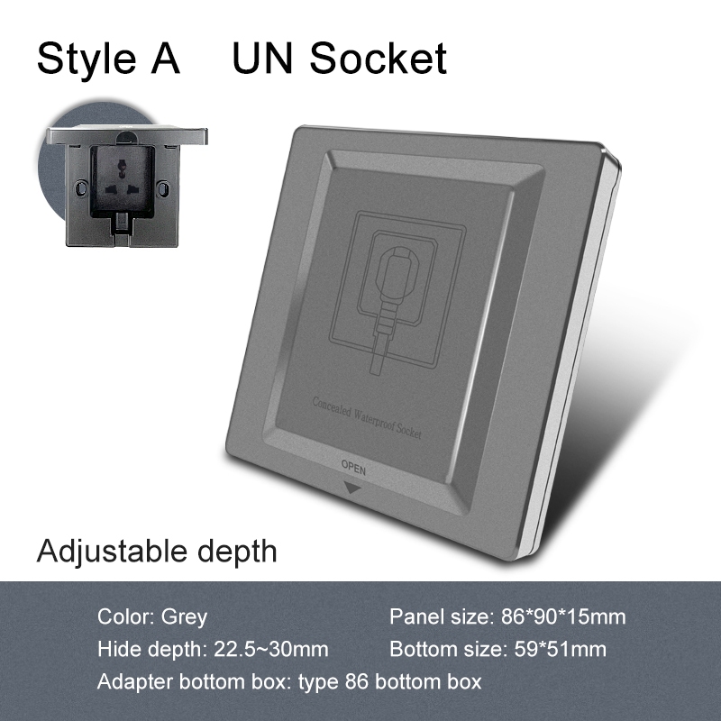TEP Wall Hidden Socket Waterproof Outlet IP66 86 Type Concealed Embedded Wall Socket Home Socket