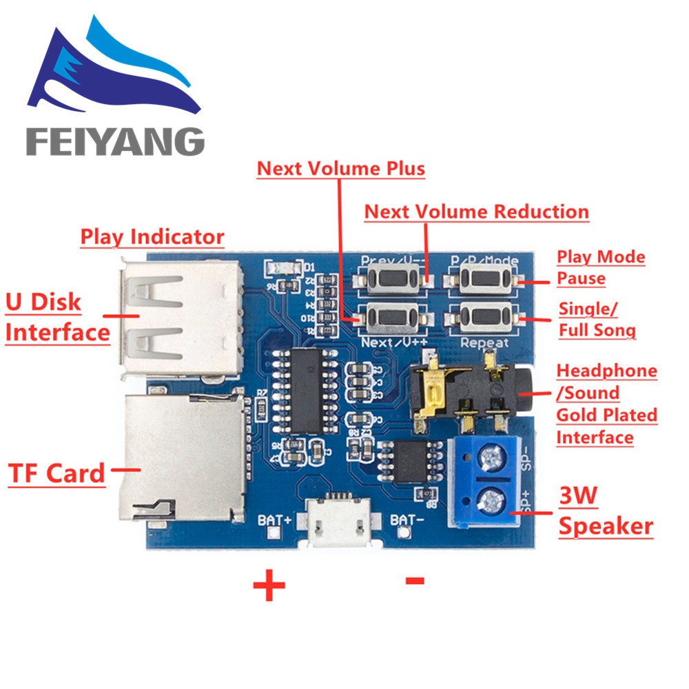 TF card U disk MP3 Format decoder board module amplifier decoding audio Player