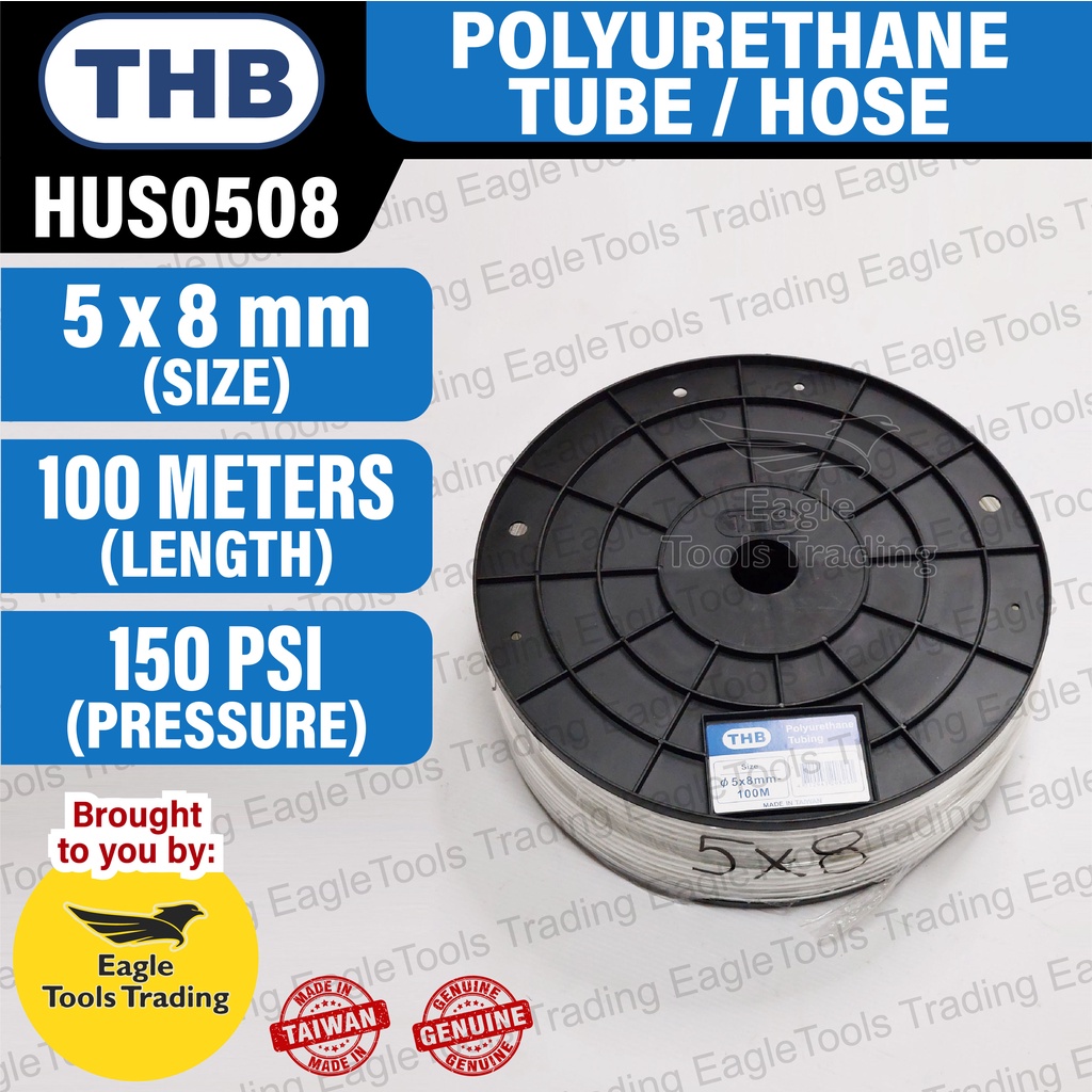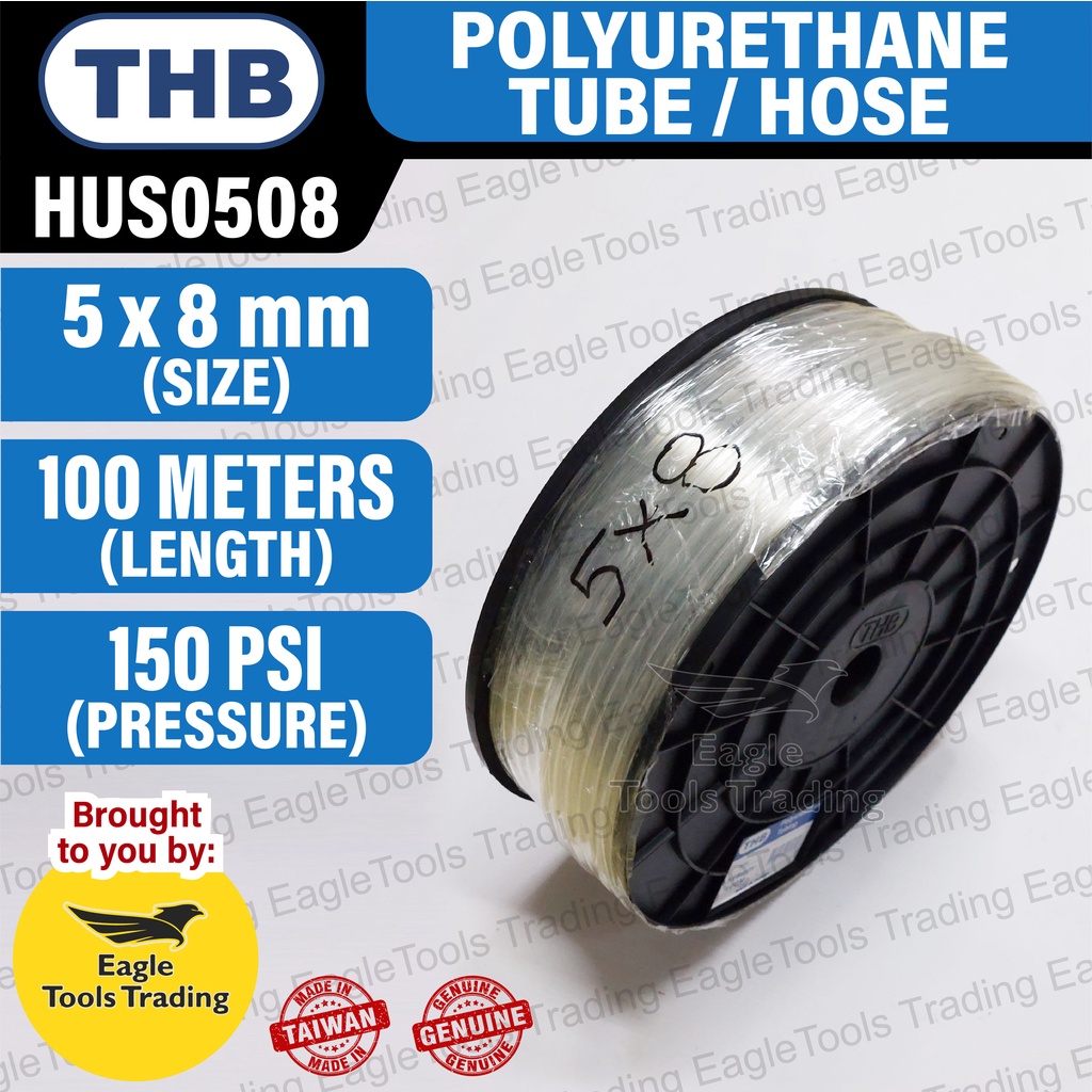 THB Polyurethane Tube / Hose (PU Hose) 5 mm X 8 mm X 100M CLEAR HUS0508