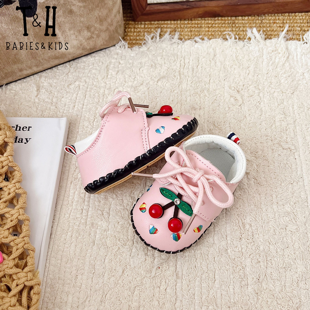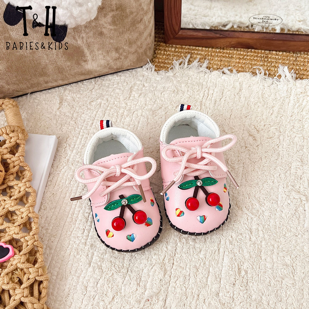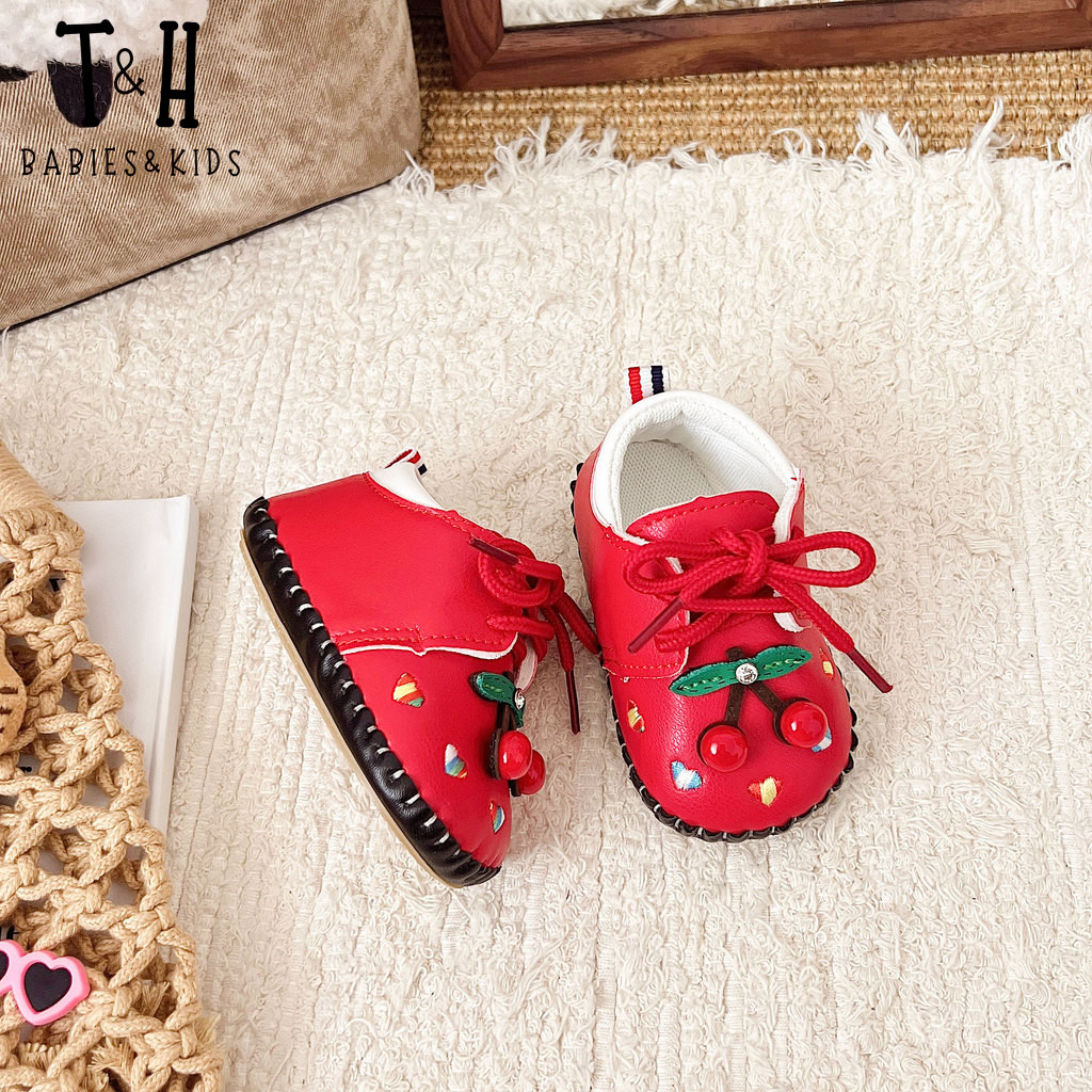 THBABY Rubber Walking Shoes For Babies Princess Cherry Spring Baby Soft Soled Breathable Shoes