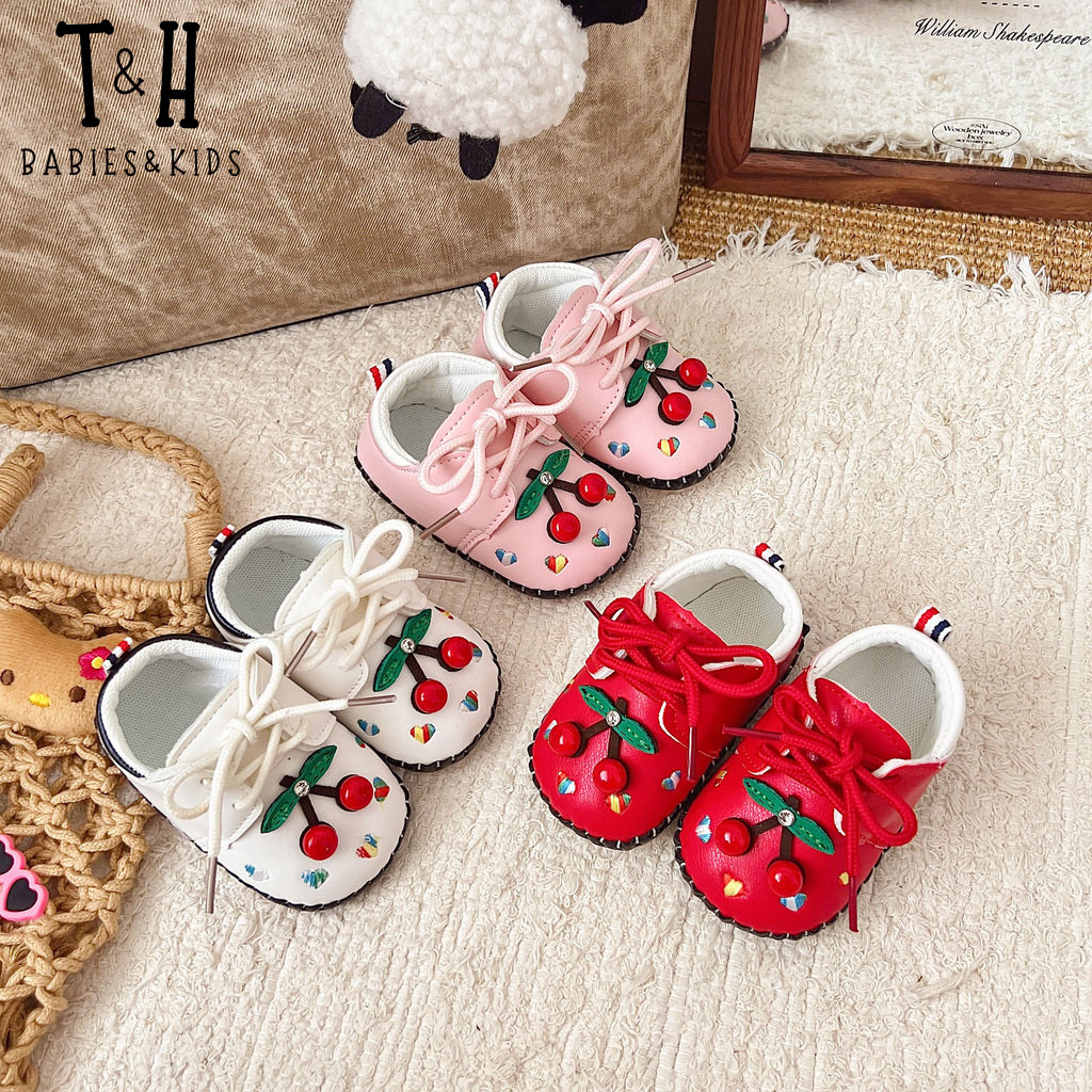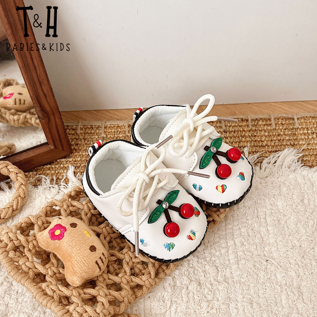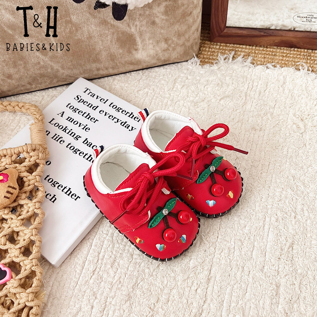 THBABY Rubber Walking Shoes For Babies Princess Cherry Spring Baby Soft Soled Breathable Shoes