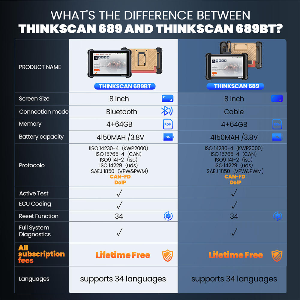 THINKCAR THINKSCAN 689BT Professional Car Diagnostic Tool CANFD DOIP Bi-directional ECU Coding 34 Reset Full System Obd2 Scanner