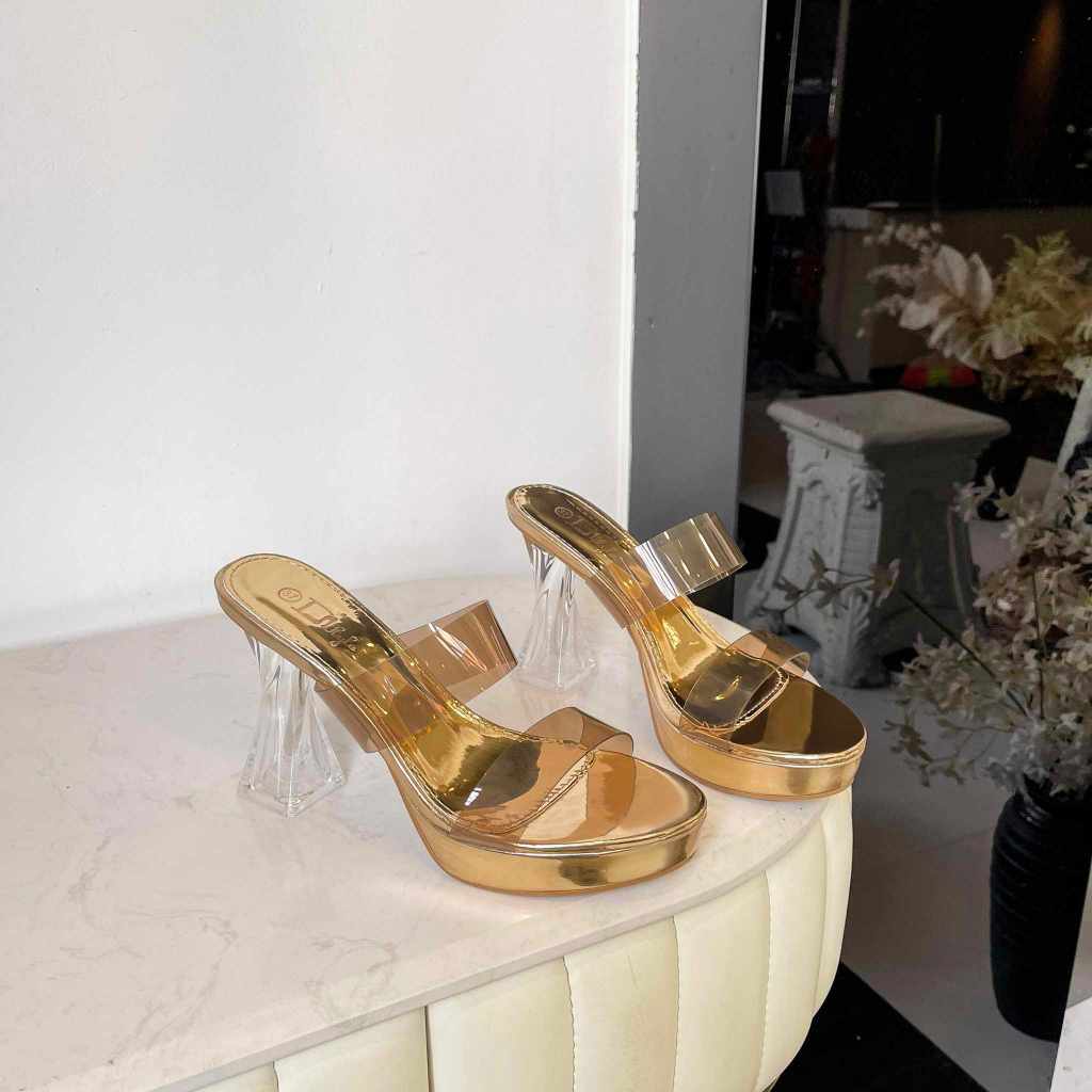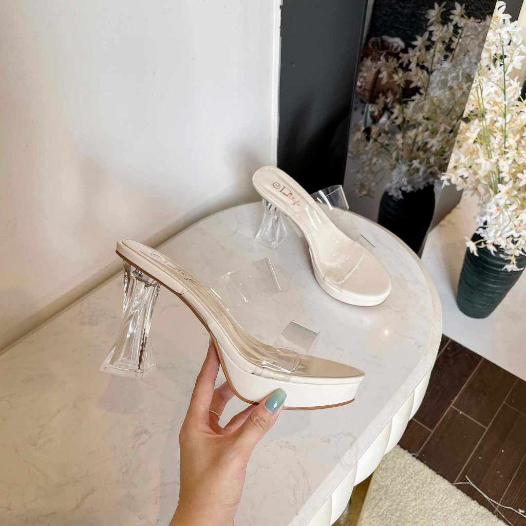 THV 9677-4 SIMPLE LOOKS AND CLEAR GLASS HEELS SANDALS