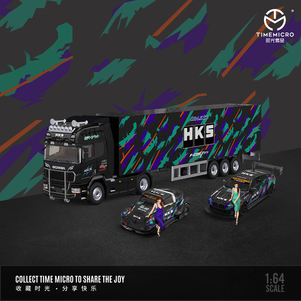 TIME MICRO 1:64 Three-Car Set, Container Truck, HKS Painting Alloy Diecast Model Cars