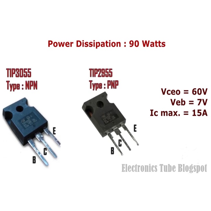 TIP2955 and TIP3055 Complementary power transistors NPN PNP BJT high current for Regulator amplifier