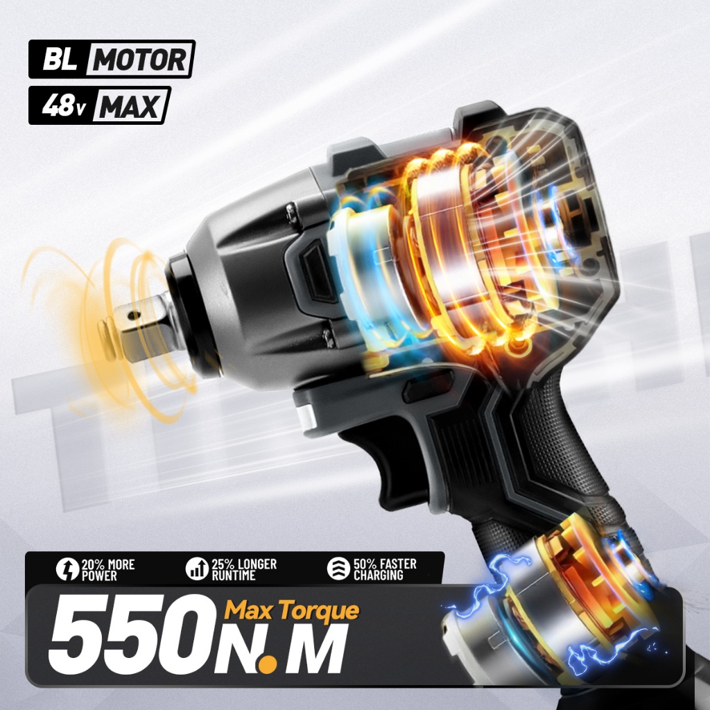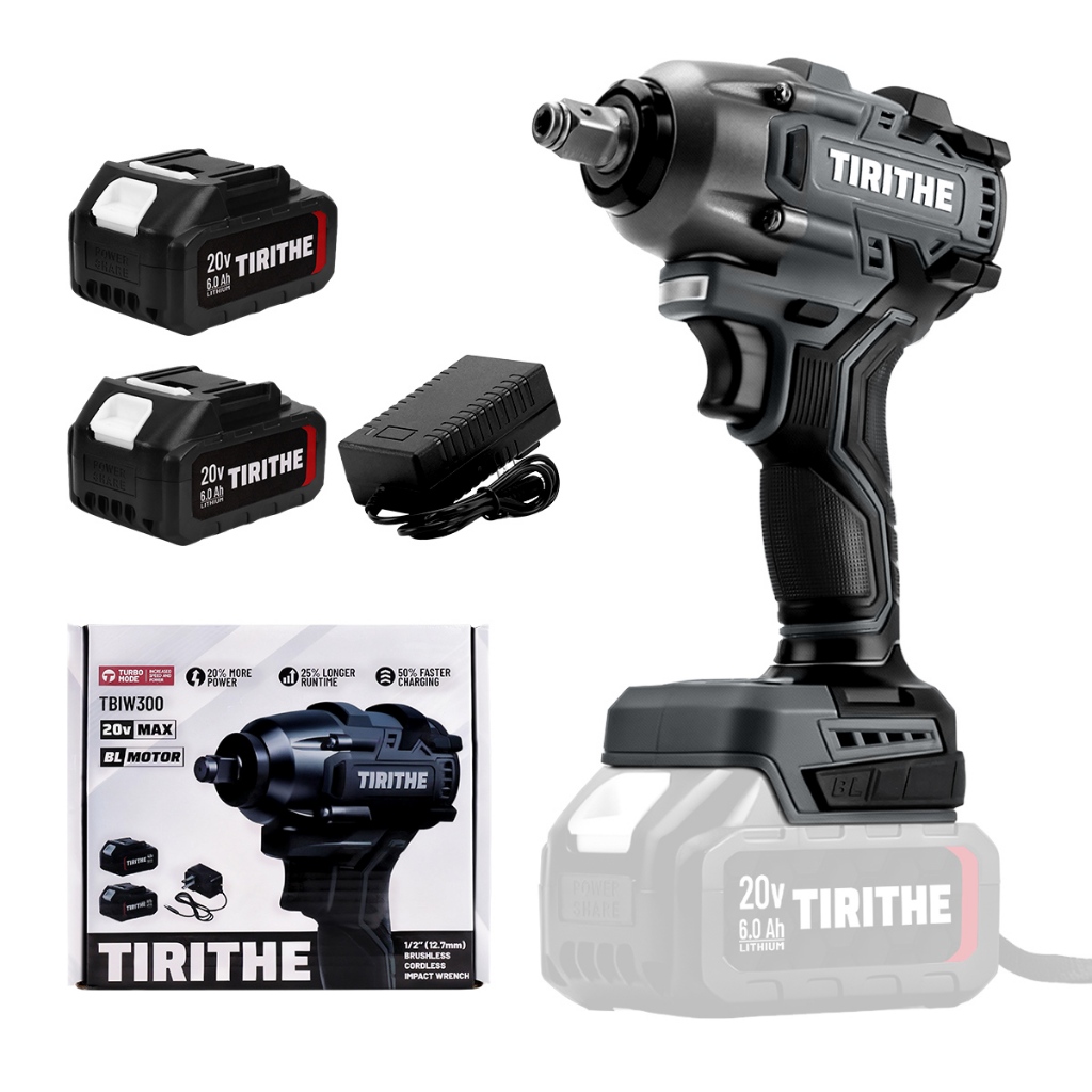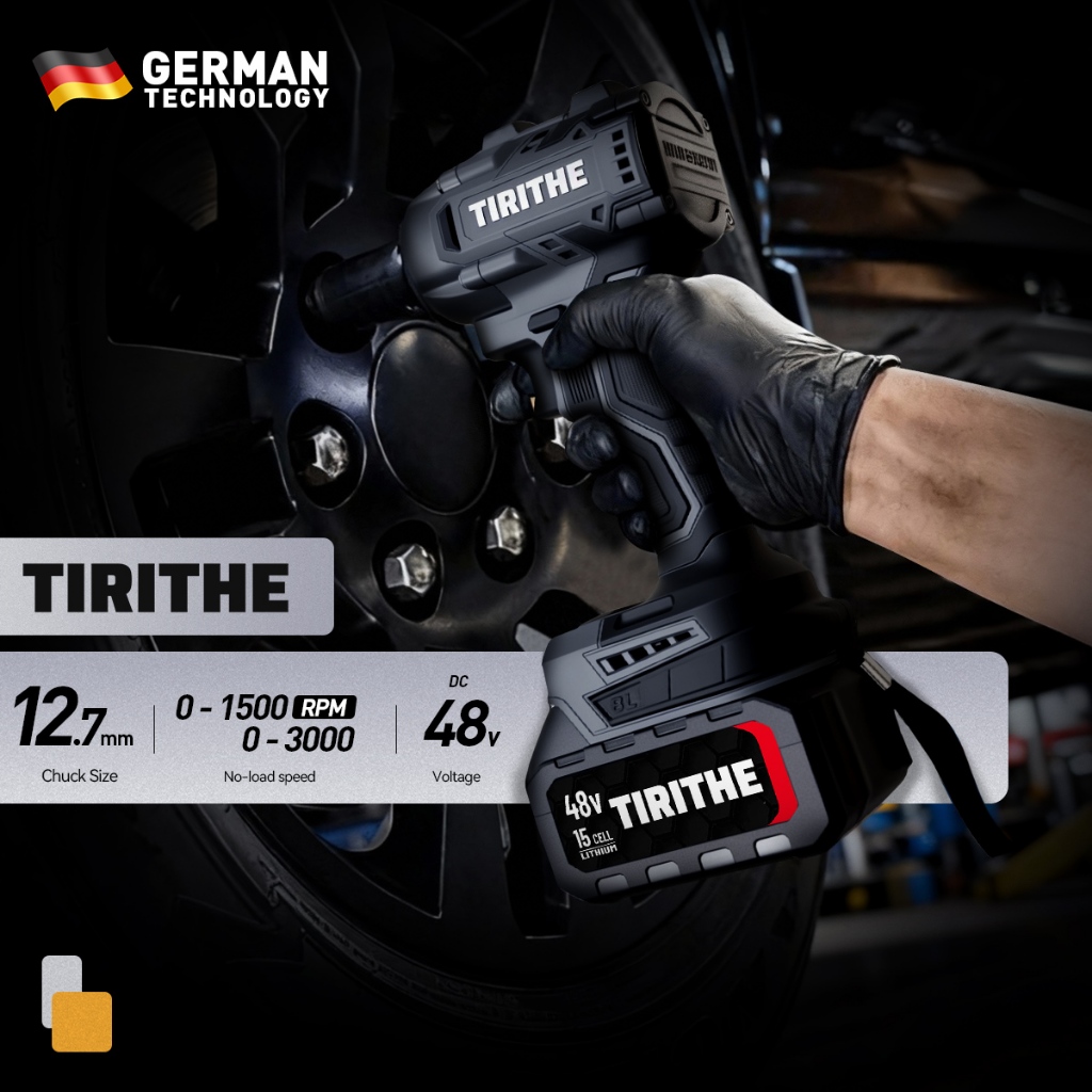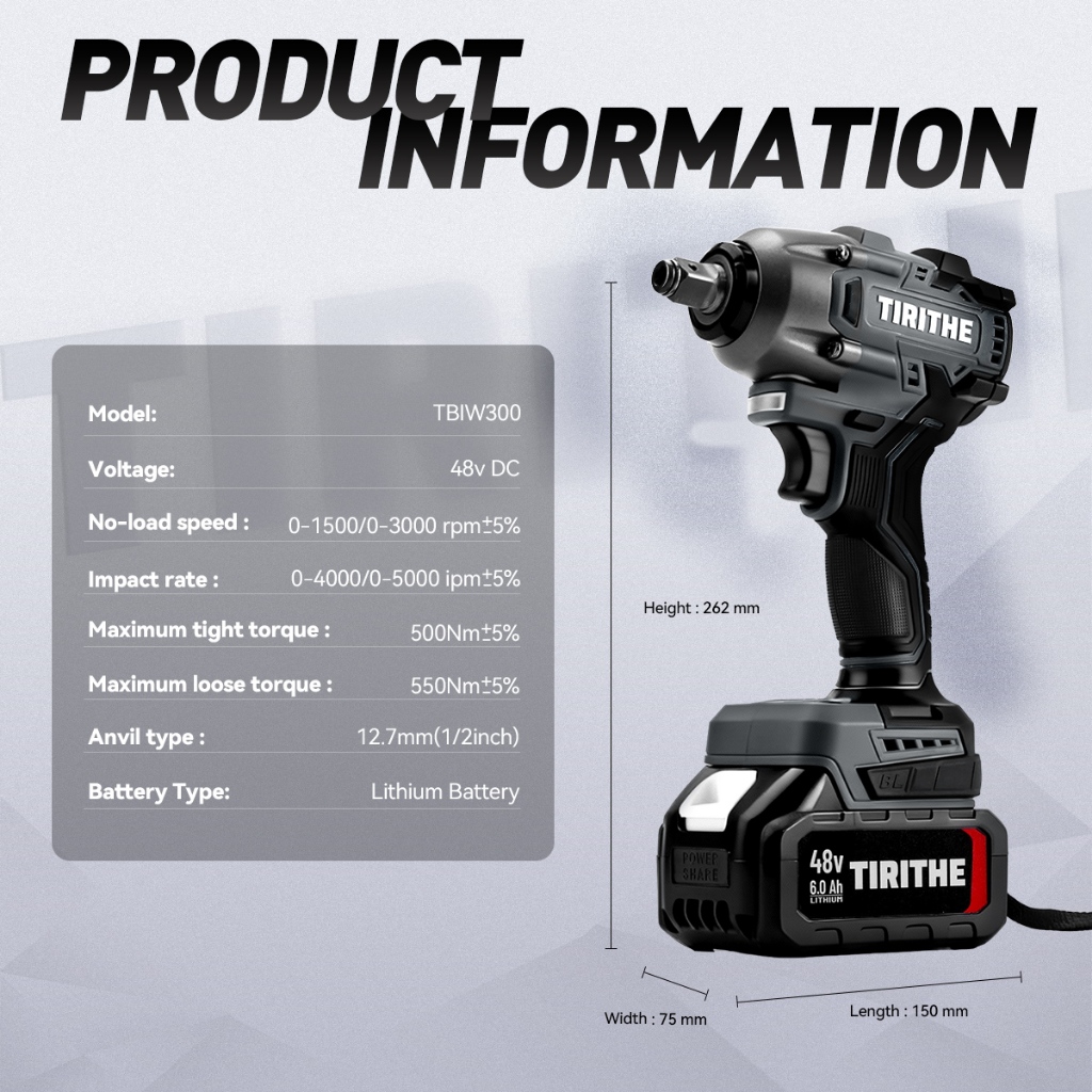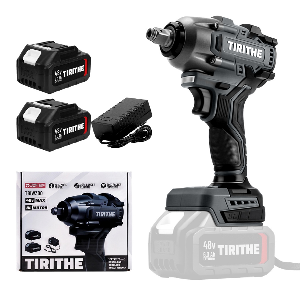 TIRITHE 48V Cordless Impact Wrench 500N.M Brushless Wrench With 2 Battery