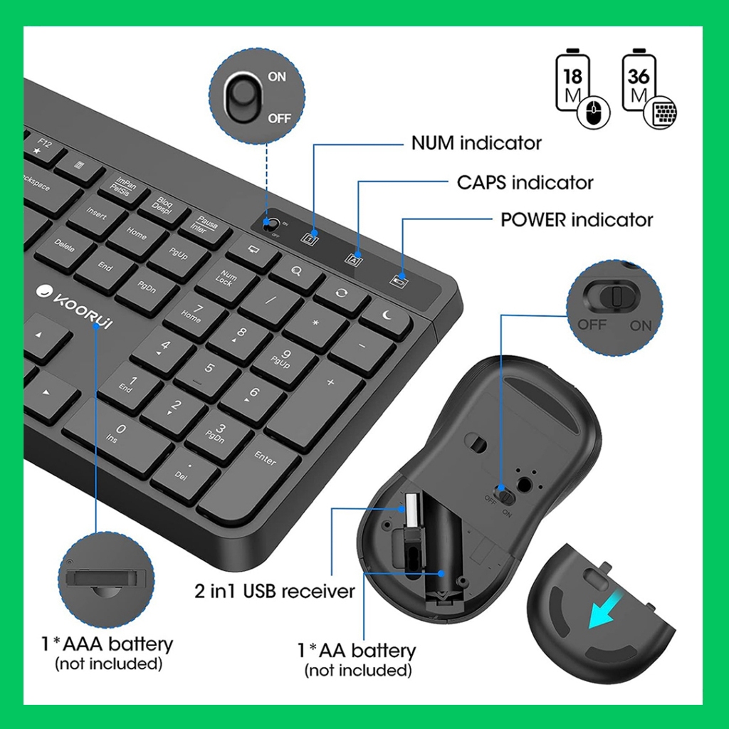 TITAN ARMY X KOORUI BK0104 Wireless Keyboard and Mouse Combos, 2.4G Silent Full Size Keyboard