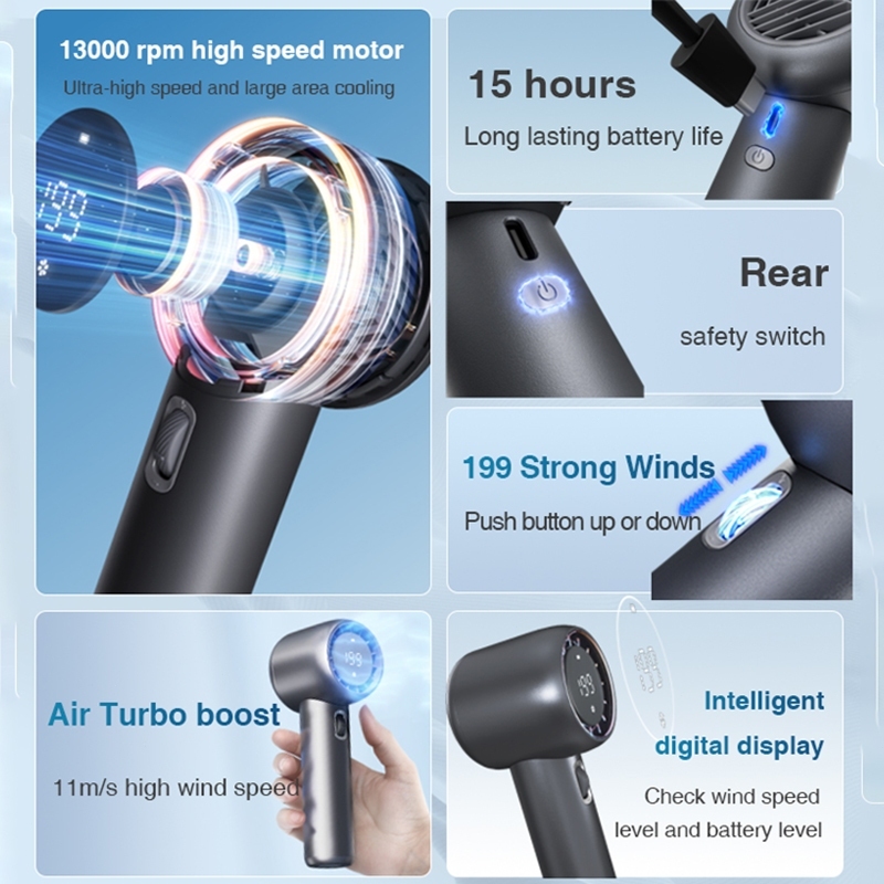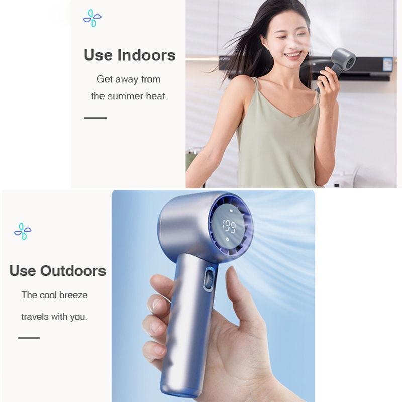 TIXX Mini fan Maliit na fan Handheld Fan Strong Wind Portable With Air Turbo Cooler Digital Display