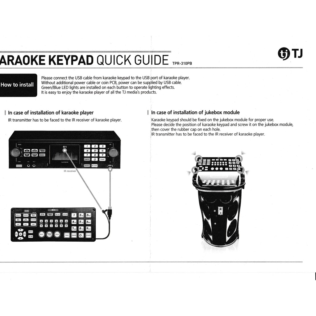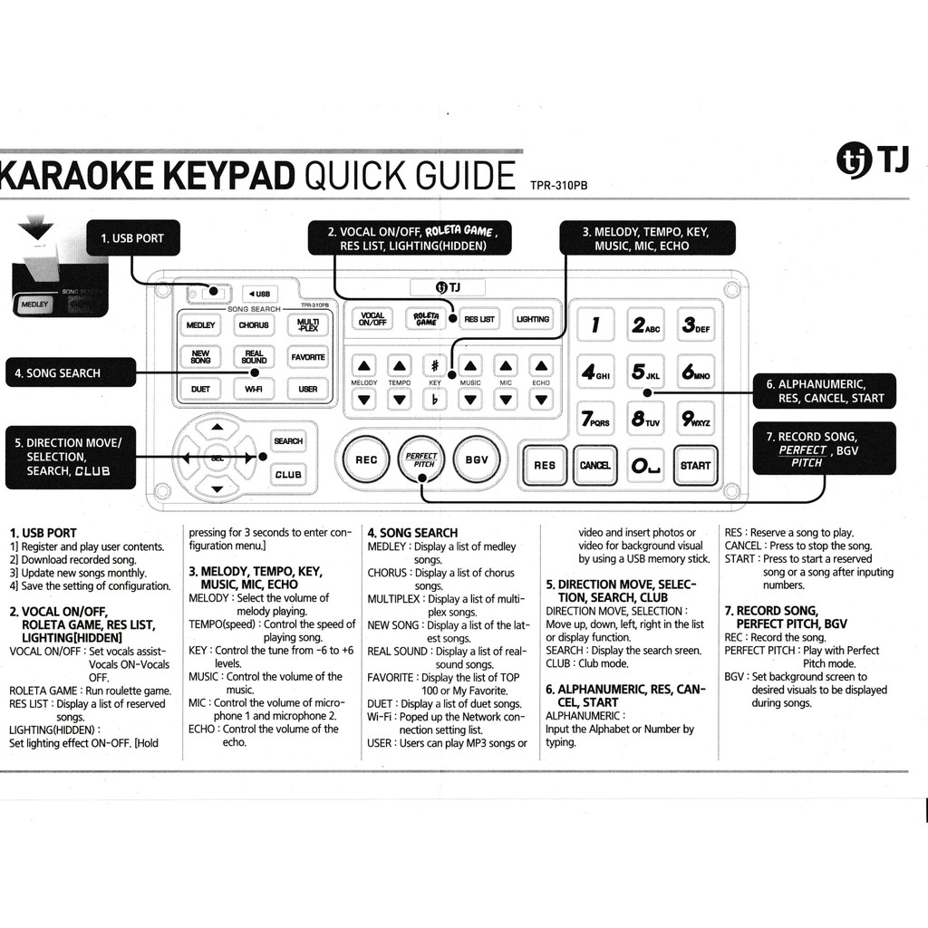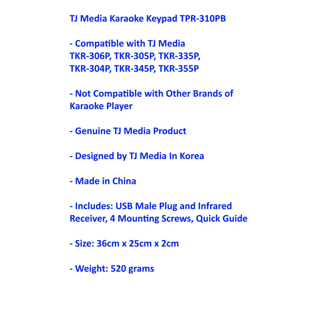 TJ Media Karaoke Keypad TPR-310PB Compatible with TJ Media TKR-306P, TKR-305P, TKR-335P, TKR-304P